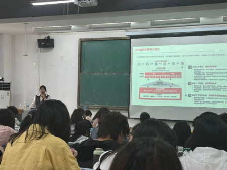 2025年4月16日,太阳成城集团tyc234cc财务管理专业大一学生举办了一场认知实习讲座。深圳万科祥盈管理服务有限公司武汉分公司受邀参与,公司人力总监杨丽和运营组负责人章洁溶为学生们分享了财务能力提升与未来职业规划的相关内容。