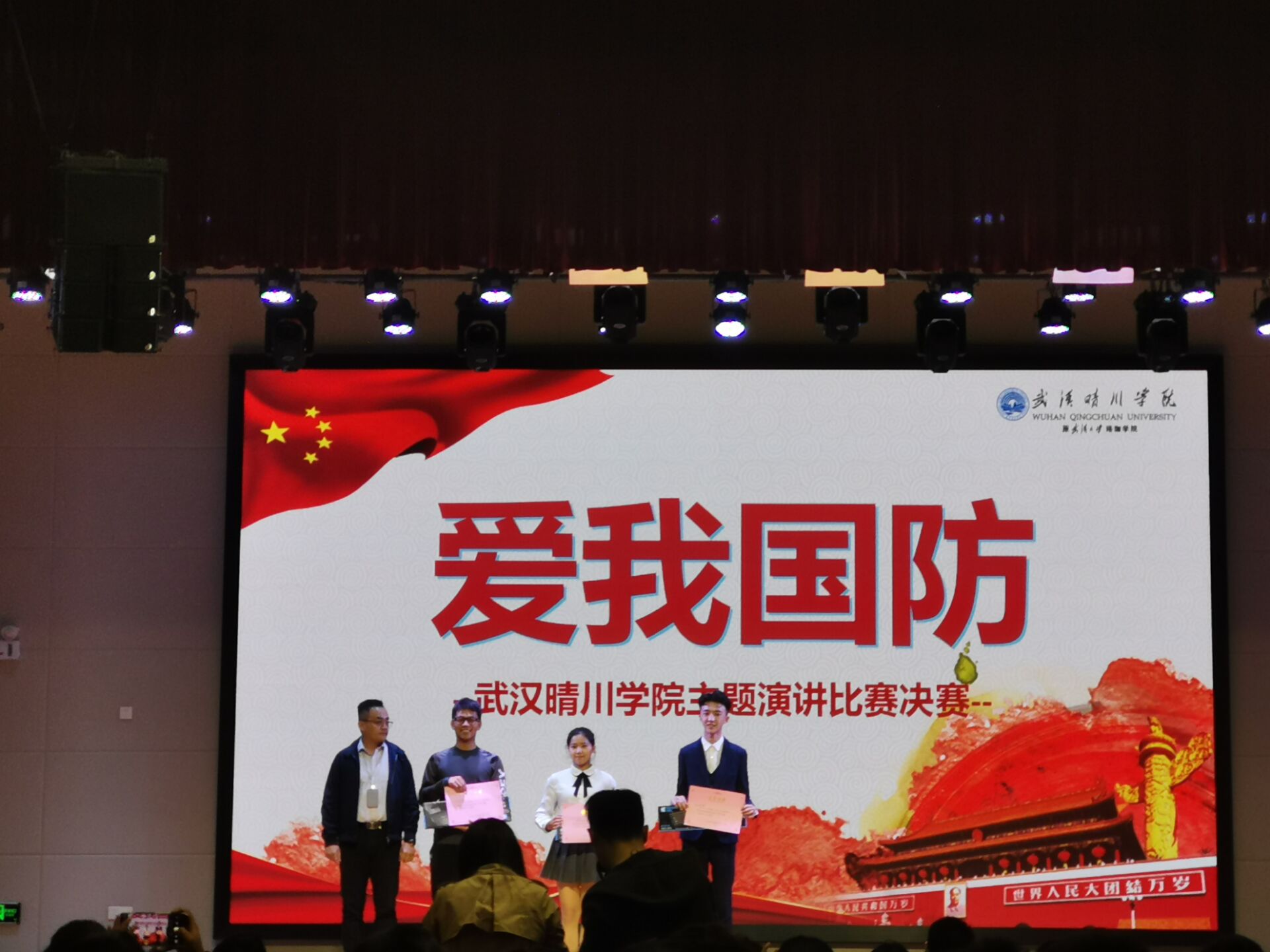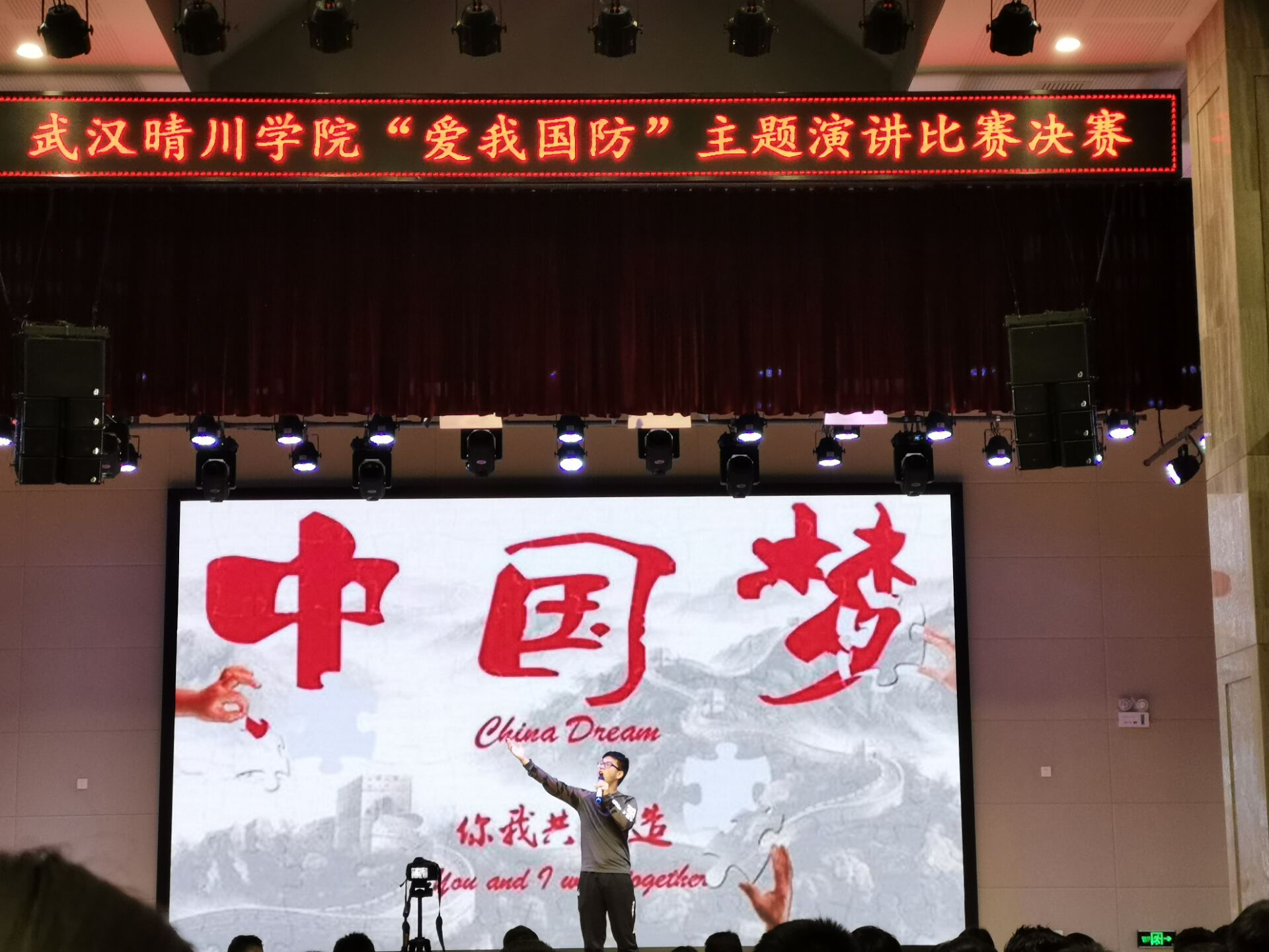 (通讯员:陈琪摄影:陈琪)2019年10月16日,我校一年一度的爱我国防演讲活动在晴川小剧场拉开序幕。本次爱我国防演讲活动,由我校相关部门负责统筹与组织。比赛正式拉开序幕。荧屏上的一张张图片,诉说着中国自成立以来所经历的艰难困苦,机遇挑战;台上选手铿锵有力的声音,饱含深情的诉说对祖国母亲的感激。每一位选手,每一种声音,都响起在晴川剧院,回荡悠长。