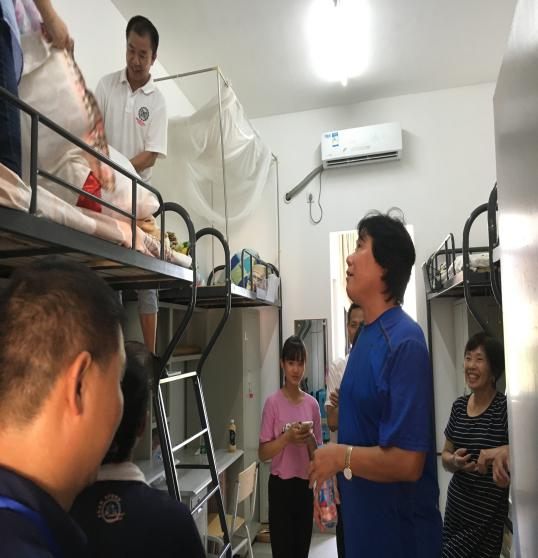 当天很多家长也来到宿舍给自己的孩子整理床铺,院长亲切的和家长交谈,询问一些新生的情况。家长的脸上露出了放心的微笑,新生眼里充满温暖。虽然在高温天气里的院长和老师们汗流浃背,但家长的肯定和新生的安心,是院长和老师们最大的真心。
