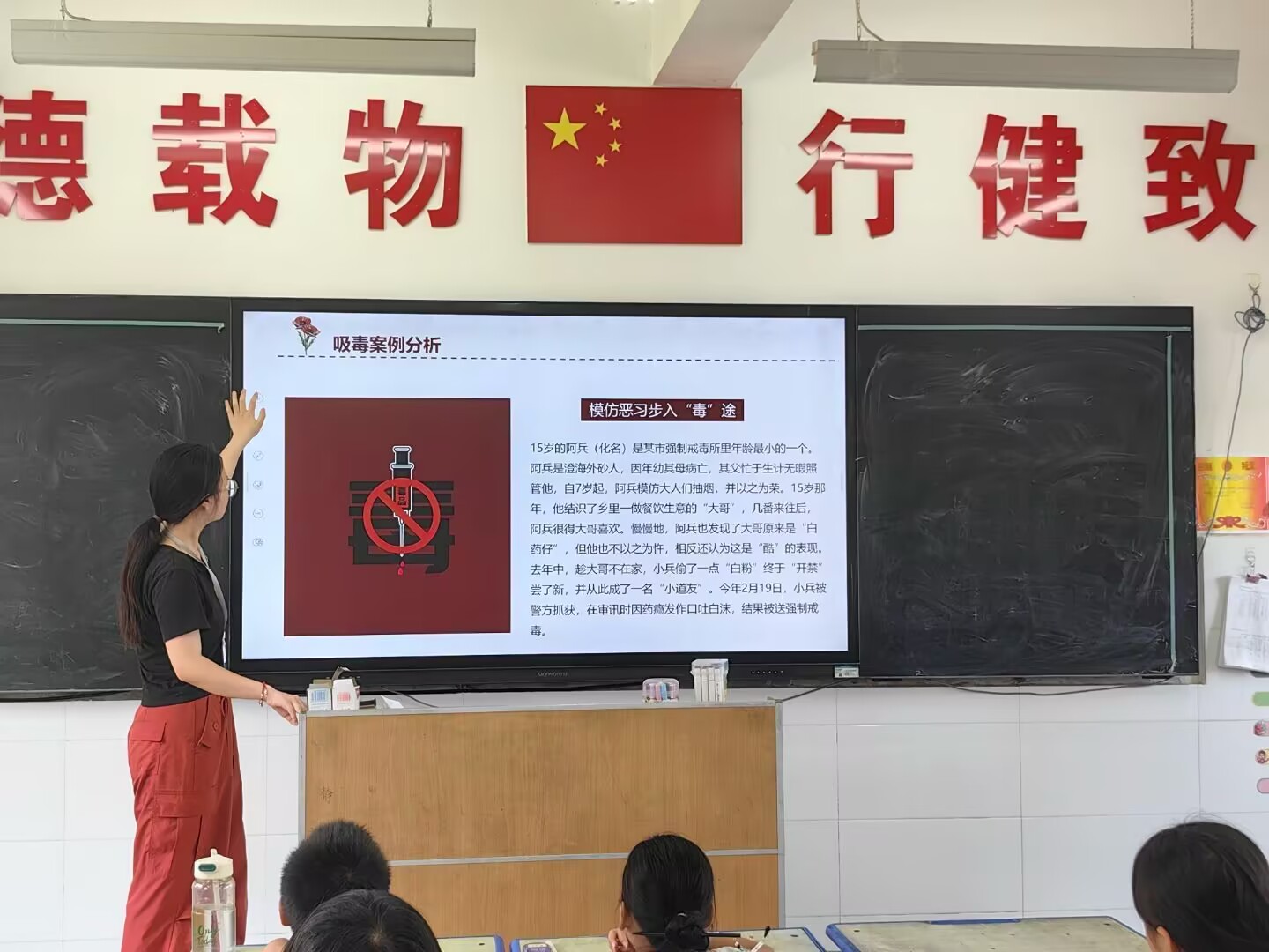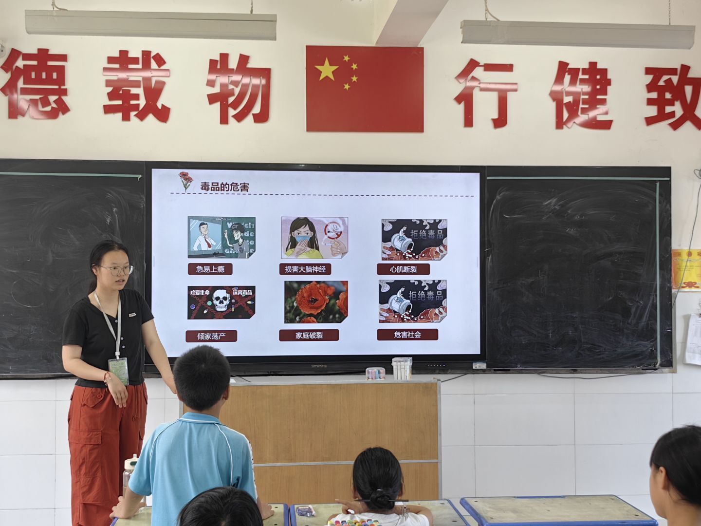 为进一步增强青少年禁毒意识,加深对毒品危害认知,提高自护能力,励励晴川志愿服务队以“珍爱生命,远离毒品”为主题,采用现场讲解、案例剖析与手工实践相结合的形式,为广水市致远学校的孩子们开展了一堂生动且极具教育意义的禁毒教育课。