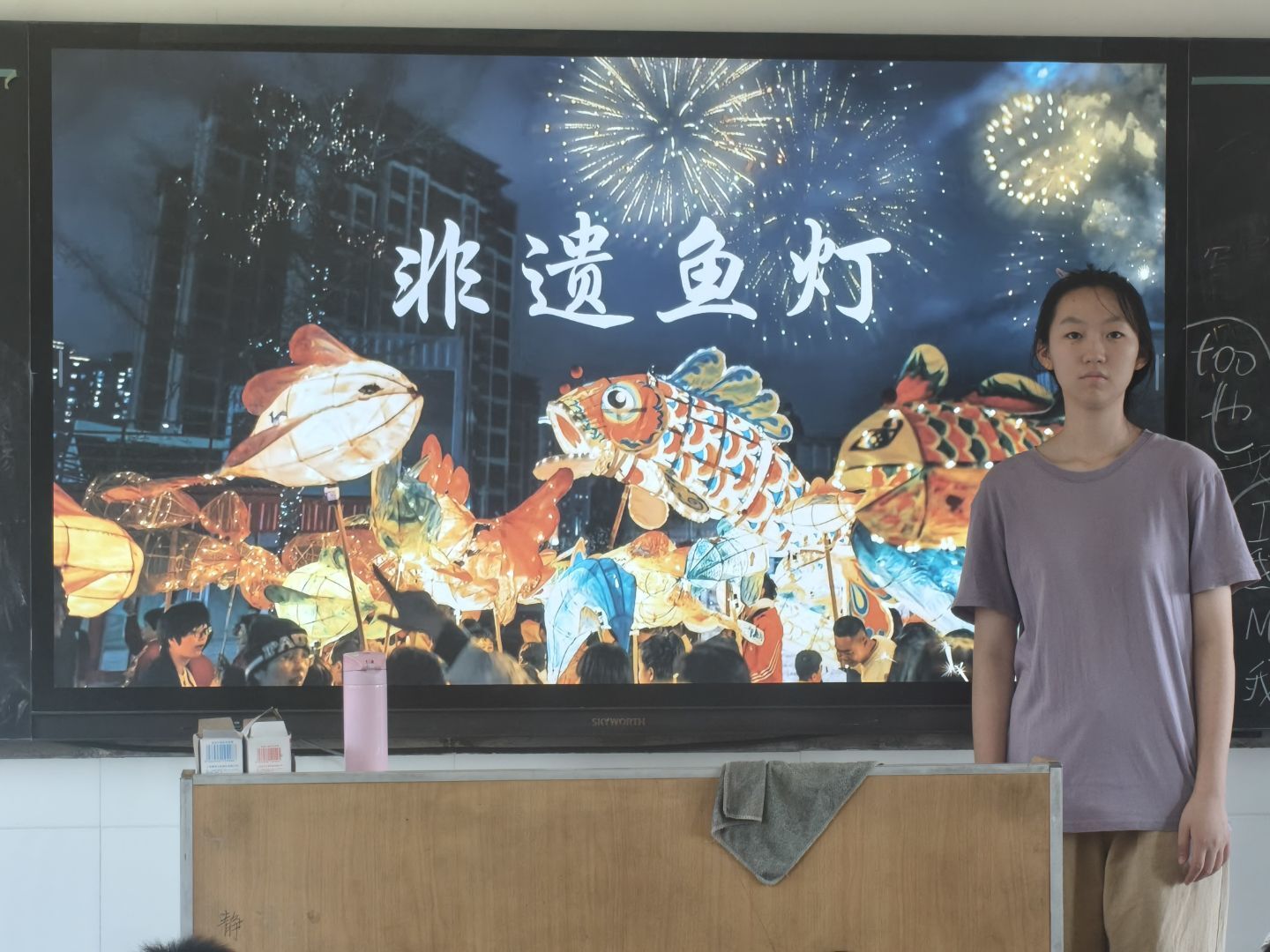 当孩子们还沉浸在云肩的古韵中时,志愿者潘星茹带着他们走进了鱼灯的奇妙世界。她声情并茂地讲述着鱼灯背后的民俗故事,在传统节庆里,鱼灯宛如吉祥的使者,穿梭在大街小巷,带来欢乐与祝福。孩子们听得入了迷,眼前仿佛浮现出那热闹非凡的场景:灯火辉煌中,鱼灯摇曳生姿,人们欢声笑语,一片祥和喜庆。