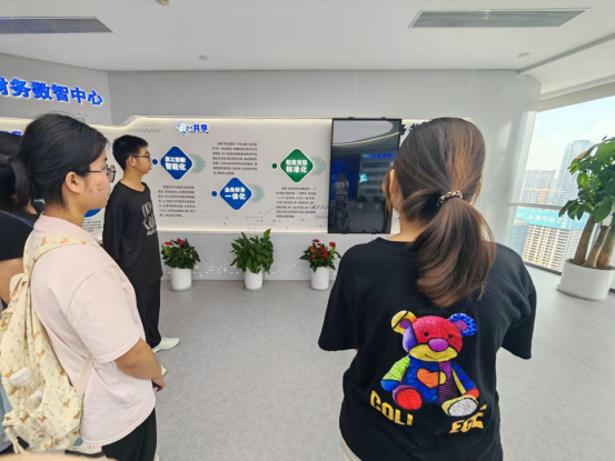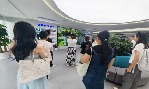 在湖北文旅财务数智中心,魏敏总经理以文旅数智2.0Hub平台为核心,详细介绍了战略财务、业务财务与共享财务“三位一体”的智能化管理体系。通过大屏幕动态展示的“业务财务一体化”“制度流程标准化”等模块,同学们直观感受到数字化技术如何驱动企业财务变革。在办公区,费用组、成本组等团队的高效协作场景,生动诠释了共享财务中心“用技术提质增效、用系统管控风险”的运营理念。