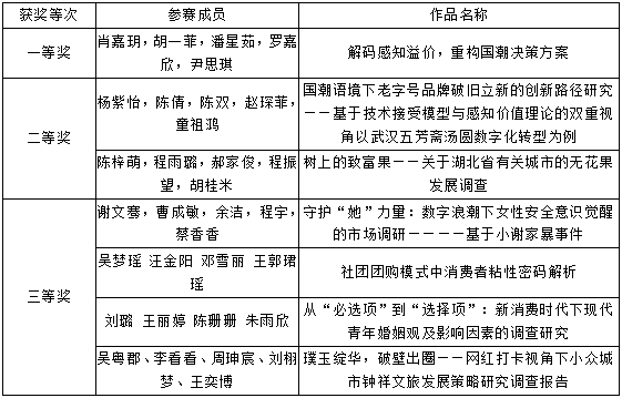 为提高学生实践创新能力,深化专业知识应用,我校于 2025年 3 月 10 日举办了第十五届全国大学生市场调查与分析大赛校内选拔赛。经专家评审,现将获奖名单公示如下: