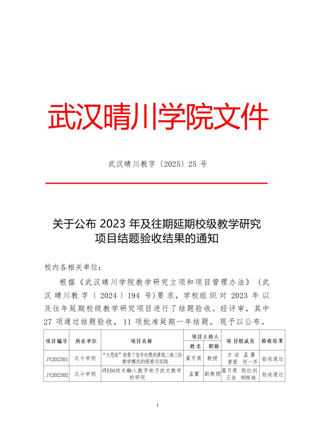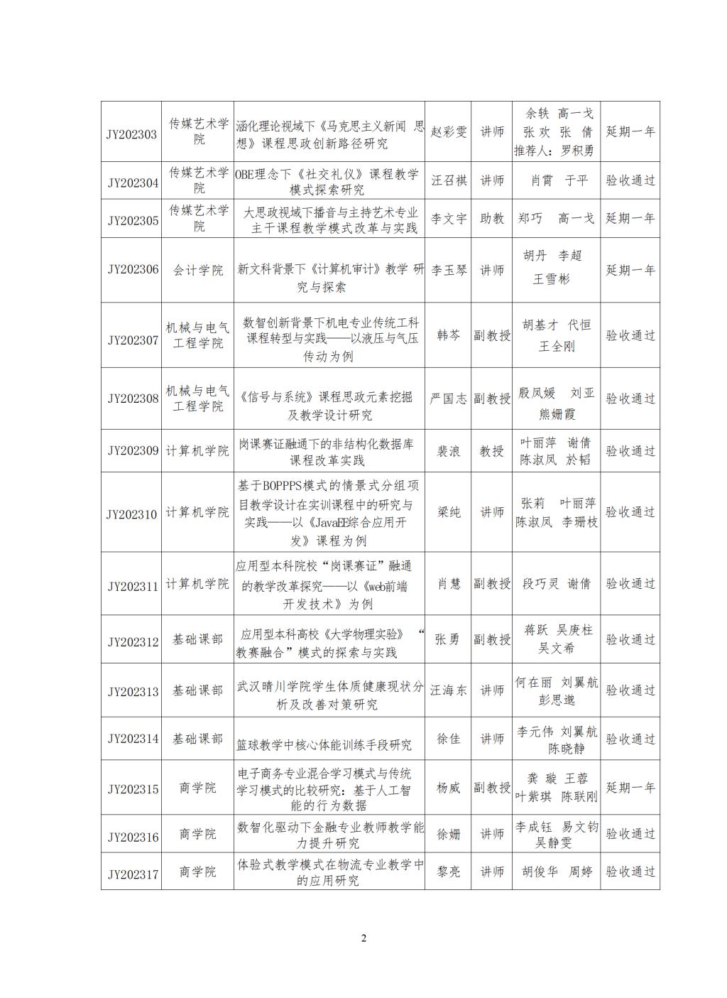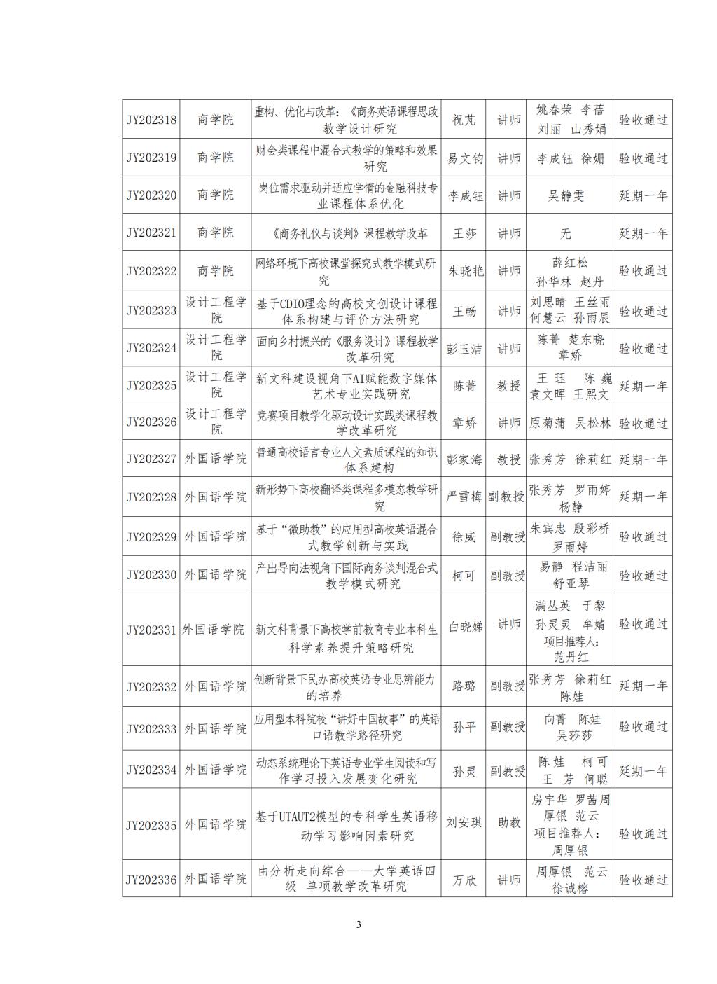 关于公布 2023 年及往期延期校级教学研究 项目结题验收结果的通知