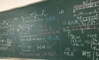 第一小组在教1-301进行,由朱俊杰、饶为胜、周滔三位老师参加。朱俊杰老师讲解了《工程力学》中的平面任意力系,通过理论讲解、例题演算,详细讲解了利用平衡条件求解未知力的步骤。在讲解过程中,注重板书,而非依赖于课件,让学生能跟上教师的授课节奏。为了锻炼学生的实践能力,让学生上台演算习题,不局限于听懂,更要求会算。随后以“两弹一星”的研发过程为例,让学生理解“手算”的重要意义,培养学生善于思考、勤于动手的良好习惯