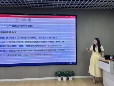 与此同时,国际金融课程组则对“汇率制度与汇率政策”章节进行了演练与打磨。曾夏颖教师从汇率基础理论出发,结合国内外经典实例,深入浅出地分析了不同汇率制度的优劣及政策影响,引导学生关注全球经济动态,培养国际金融视野。研讨中,老师们就知识点的前沿更新、教学方法的创新运用以及复杂理论的通俗化讲解进行了充分交流,力求教学内容既严谨专业又生动易懂。