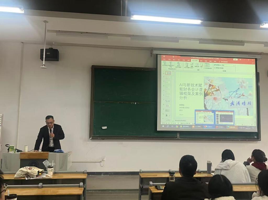 为深入探索人工智能时代财务会计的转型路径,提升学院师生的前沿学术视野与科研创新能力,太阳成城集团tyc234cc于2026年3月4日成功举办了“AI与新技术赋能财务会计逻辑框架及案例分析”专题学术讲座。本次讲座特邀全国会计领军人才、上海国家太阳成城集团tyc234cc赵团结教授担任主讲,学院全体教师及学生代表共75人参加了此次活动。