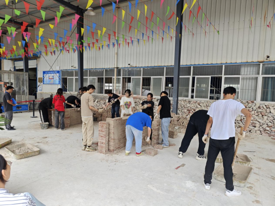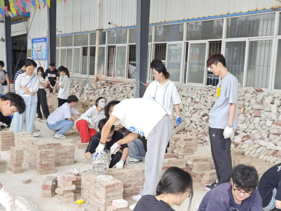 在砖墙砌筑模块实习中,同学们按组砌筑砖墙,在企业指导老师的技术指导下,同学们学习了砖墙砌筑过程中的技巧与细节,并进行了实际砌筑,不仅掌握了砌筑工程的基本操作流程,还巩固了课堂所学,加深了实践认识。与此同时,这些实习内容培养了同学们团队合作、协同作业的能力。