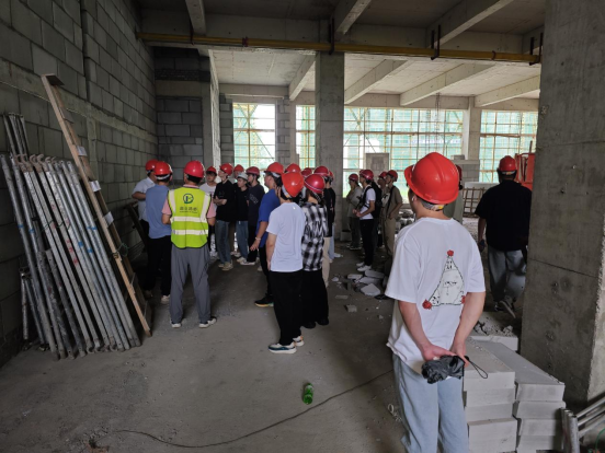 在本次实习的最后一天,即7月3日,同学们前往凤凰产业园的工地现场进行参观学习。由项目负责人为同学们现场讲解与施工工艺有关的内容,同学们身临其境地与专业人员现场交流,真正实现了理论联系实际。