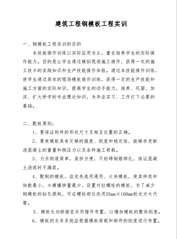 建筑工程模版工程实训