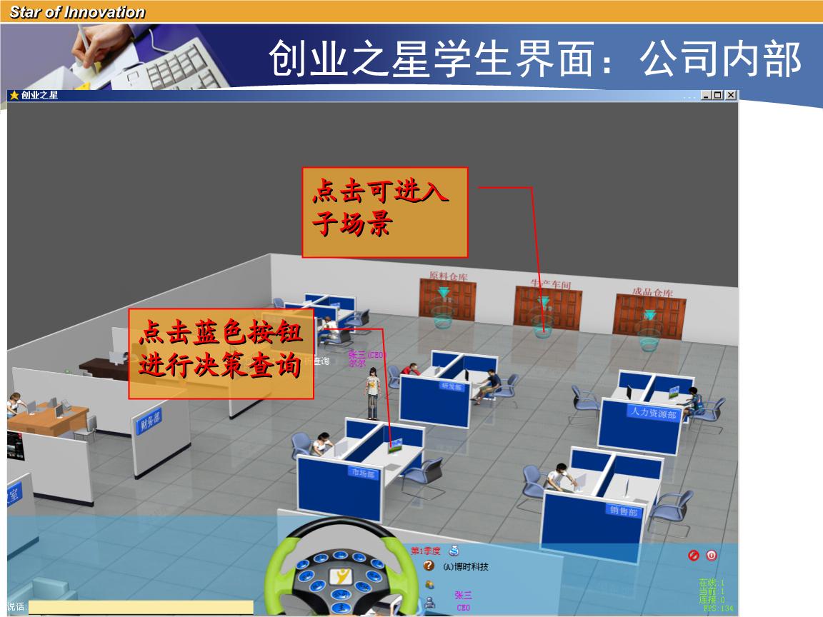 实验室主要功能:本实验室利用相关软件,通过角色分组为CEO、财务总监、市场经理、采购经理等管理角色,经营管理虚拟公司;模拟企业实际运行状况,内容以及企业整个战略、生产、市场、销售、财务管理、团队协作、绩效考核等多方面。通过实践实训学习,使学生更好的掌握整个企业经营管理活动整个系统,以提高学生实践应用能力。