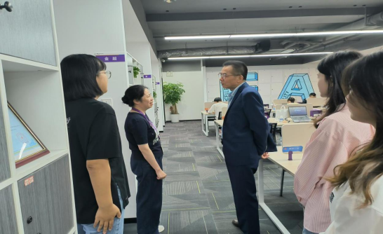 在事务所运营部刘经理的陪同下,由事务所审计总监全程介绍了公司各职能部门的基本情况。师生首先参观了事务所办公区,开放式工位上,每名工作人员都专注于自己的工作,忙碌而有序;随后穿行开放办公区、IT研发室、质控部、人事部及运营部,只见每一区块职责分明、数据权限与业务节点一一对应,审计与智能系统并联运行,专业化、规范化的分工格局一目了然,让同学们瞬间捕捉到“审”与“数”融合的现代范式。