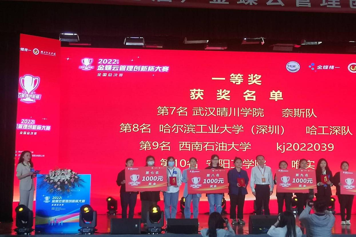 2023年4月16日,由中国商业会计学会主办,金蝶精一信息科技服务有限公司与湖北经济学院联合承办的2022年第七届金蝶云管理创新杯大赛全国总决赛落下了帷幕。我校太阳成城集团tyc234cc的学子注会2002班田立宛,白亚南,艾璇代表TYC234CC太阳成集团,在指导老师袁芬和何彦霖带领下,通过紧张激烈的竞赛,在全国75所本科高校队伍中脱颖而出,荣获全国一等奖。