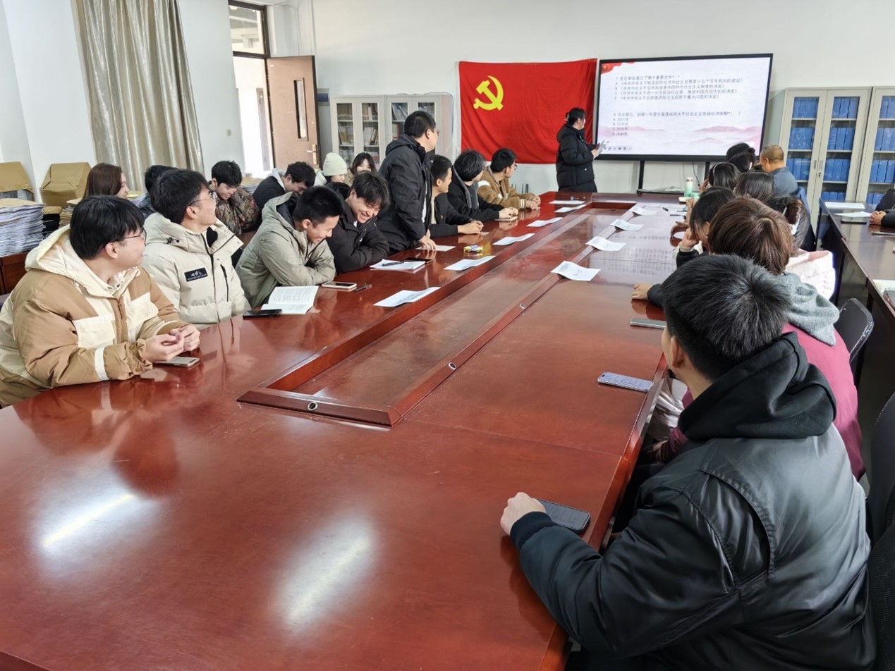 会议第三项为击鼓传花小游戏,在学习感悟分享与“击鼓传花”知识问答环节,现场气氛热烈非凡。党员们踊跃分享自己在理论学习中的收获与体会,结合自身实际,阐述如何将所学知识运用到学习、生活和未来的工作中。知识问答环节设置了涵盖党史、党的重要会议等丰富内容的题目,如标志着中国新民主主义革命开端的历史事件、党的二十届三中全会相关知识等。通过这一环节,不仅检验了党员们的学习成果,还进一步加深了大家对知识的理解和记忆,激发了党员们主动学习党史和党的理论知识的热情。