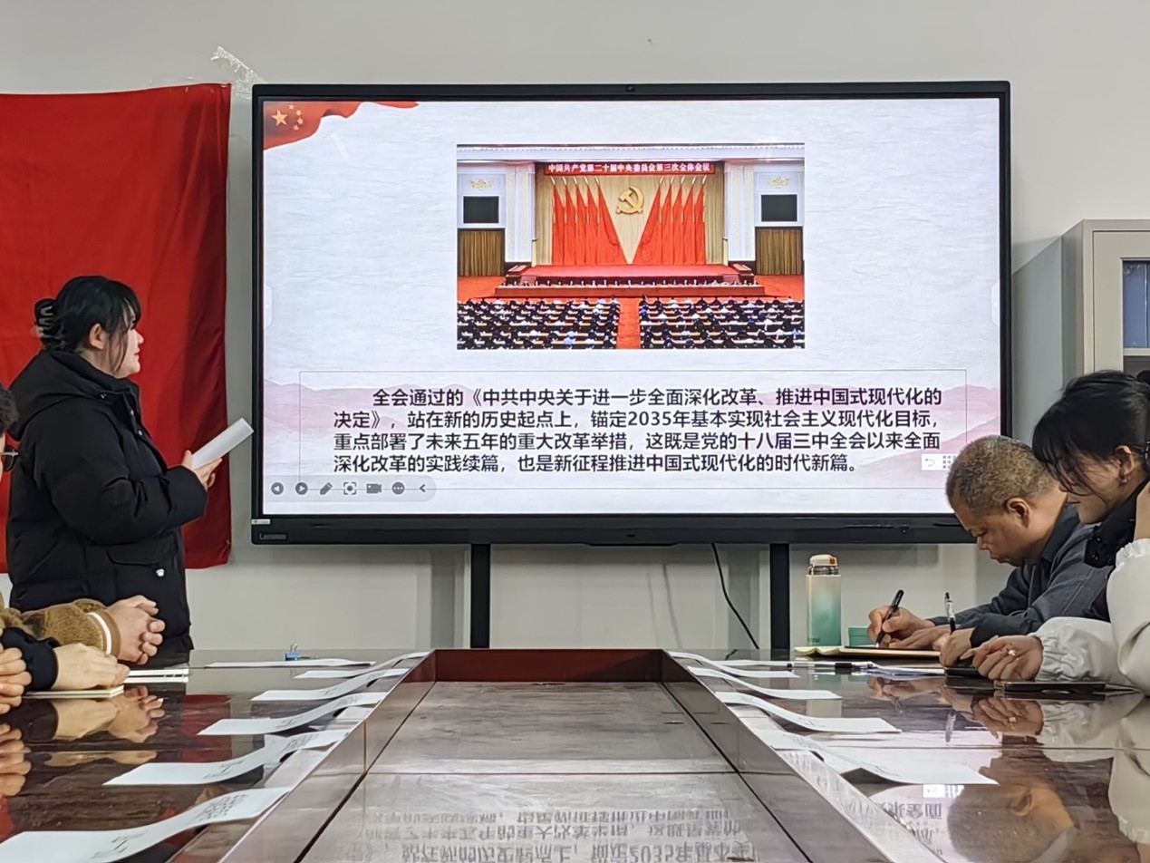 会议第二项为理论学习环节,作为本次活动的核心,围绕多项重要内容展开。党员们深入学习贯彻党的二十届三中全会精神,深刻认识到此次会议在以中国式现代化全面推进强国建设、民族复兴关键时期的重大意义。全会通过的《中共中央关于进一步全面深化改革、推进中国式现代化的决定》,明确了2035年基本实现社会主义现代化的目标,并对未来五年的重大改革举措做出重点部署,这不仅是过往改革实践的延续,更是新时代推进中国式现代化的全新篇章。党员们认真领会全会强调的构建高水平社会主义市场经济体制、健全保障和改善民生制度体系等多领域改革任务,以及坚持党的全面领导、以人民为中心等改革原则。同时,大家也明确了学习贯彻全会精神是当下及未来的重大政治任务,必须将全会精神转化为实际行动,推动中国式现代化建设。