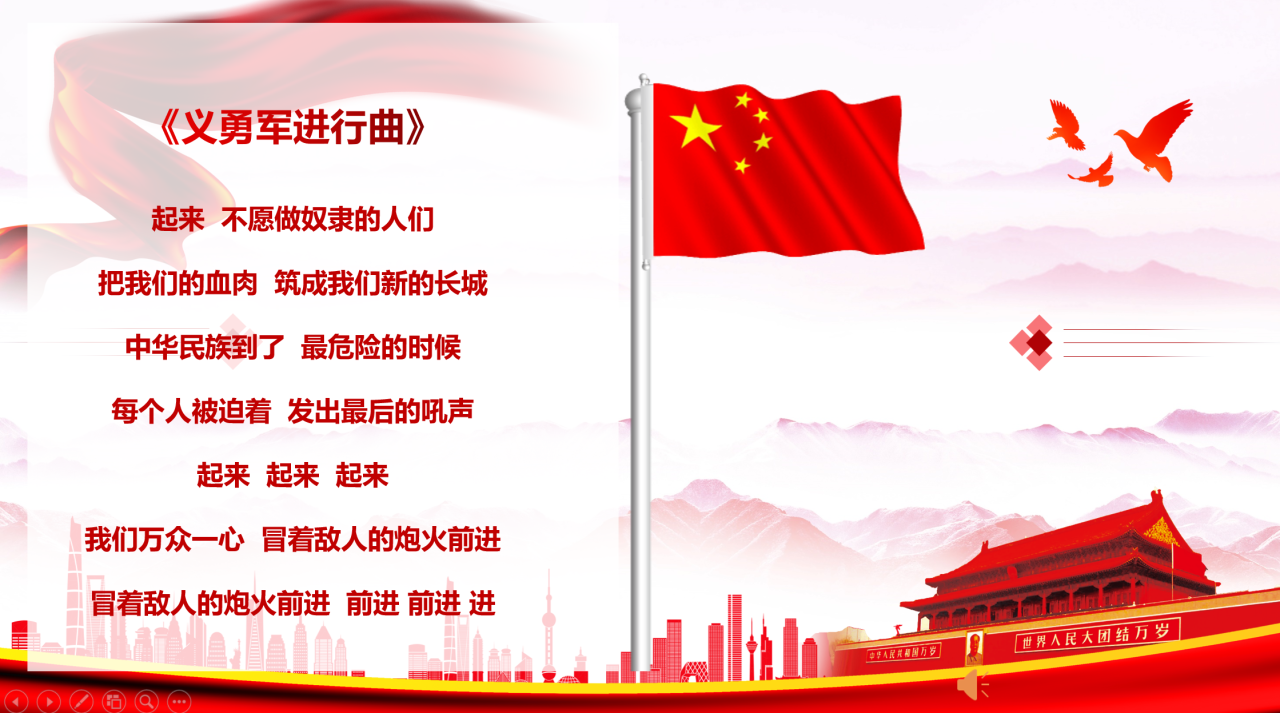 活动伊始,同志们在激昂的国歌声中抒发对祖国的热爱,场面庄严肃穆。