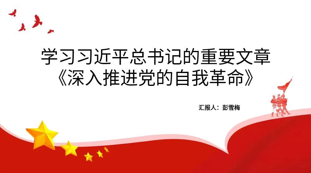 彭雪梅同志分享了学习习近平总书记重要文章《深入推进党的自我革命》的心得体会。她从党的自我革命的重要意义出发,带领大家仔细研读文章内容。通过学习,同志们深刻认识到推进党的自我革命要以坚持党中央集中统一领导为根本保证、以引领伟大社会革命为根本目的、以习近平新时代中国特色社会主义思想为根本遵循、以解决大党独有难题为主攻方向、以健全全面从严治党体系为有效途径,不断增强党的自我净化、自我完善、自我革新、自我提高能力。