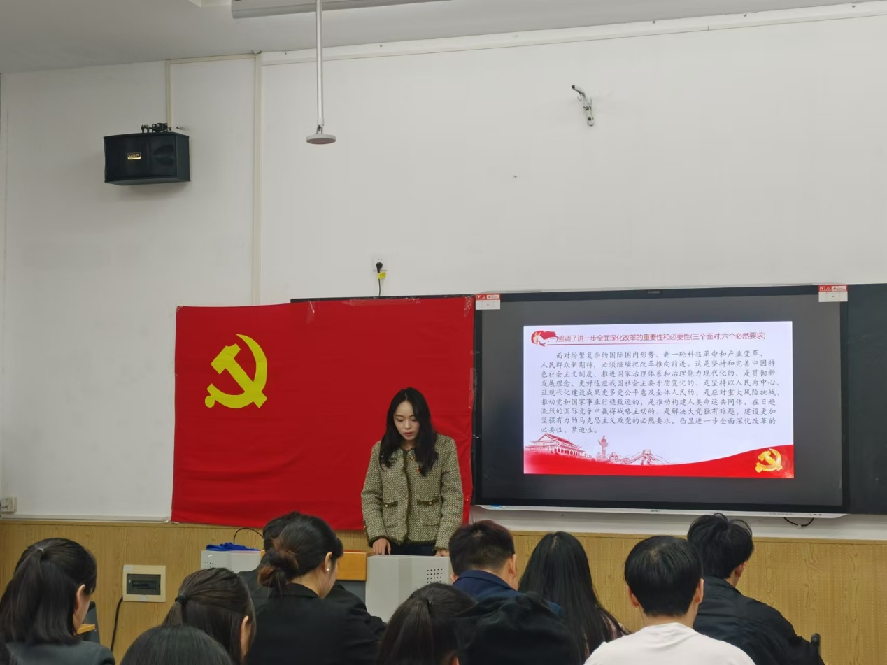 徐文希同志以“深入学习贯彻党的二十届三中全会精神”为主题展开分享。徐文希同志介绍了《中共中央关于进一步全面深化改革、推进中国式现代化的决定》的精神内涵,带领各位同志学习领会了全会精神,强调了全会的重要意义。徐文希同志提到,作为青年,应勇挑重任、积极作为,为进一步全面深化改革、推进中国式现代化贡献自己的力量。