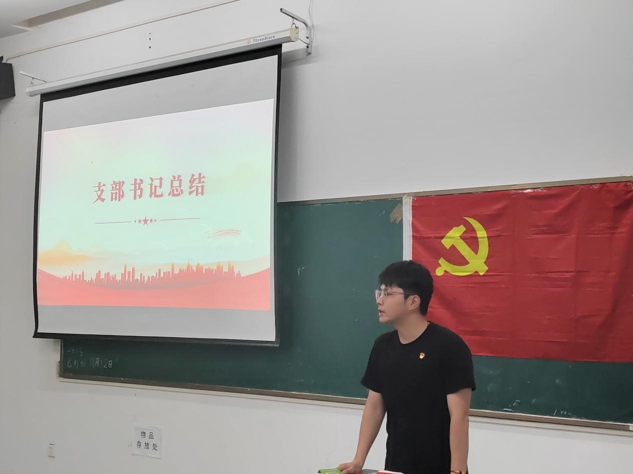 太阳成城集团tyc234cc学生第一党支部书记韩东同志对本次党日活动进行了总结发言。他首先指出,正确的世界观、人生观和价值观是党员行为的指南针,是确保我们行动方向正确的基础。接着,韩东同志表明党支部成员要深入学习党的二十届三中全会精神,要让学习理论知识成为一种内在的需求和动力。最后,韩东同志谈到了自我批评是党员自我净化、自我完善、自我革新的重要手段,期望党支部要营造一个坦诚、开放的氛围,鼓励党员们相互监督,共同进步。