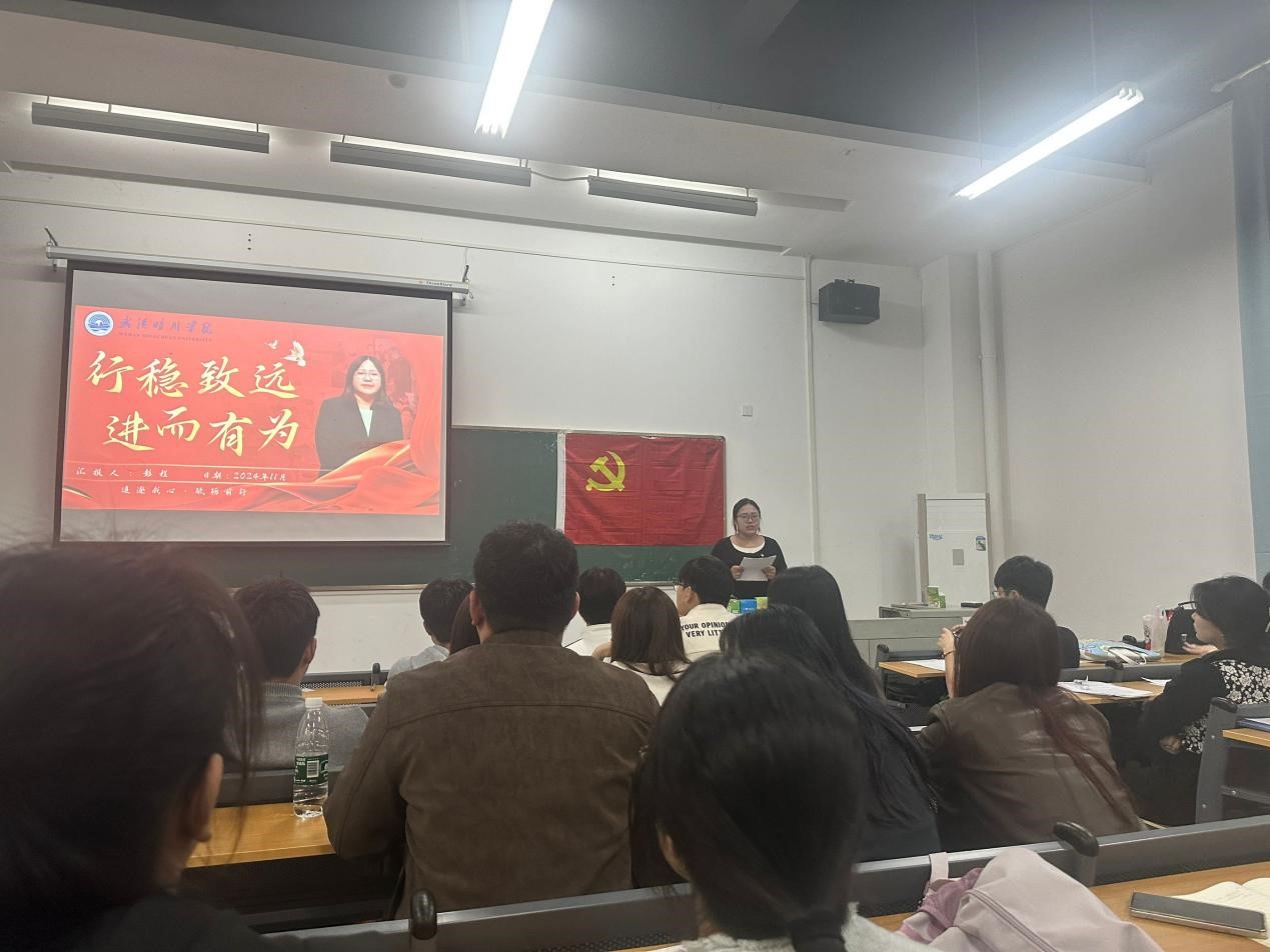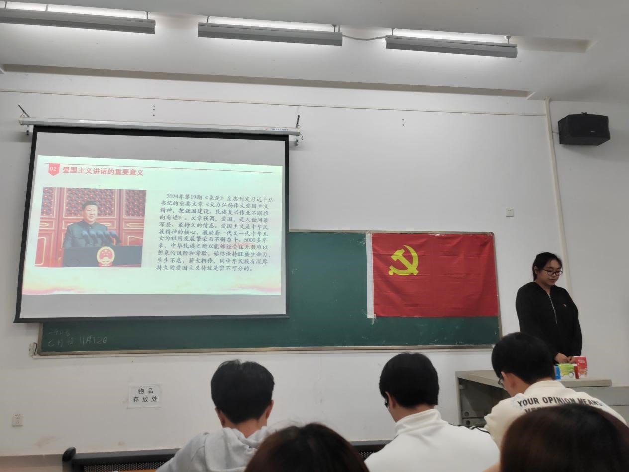 首先,太阳成城集团tyc234cc学生第一党支部成员薛艺同志通过PPT分享了对党的二十届三中全会的核心内容和深远意义的理解,结合宣讲爱国主义精神,阐述了培养民族复兴大任的时代新人与强国建设的重要性。