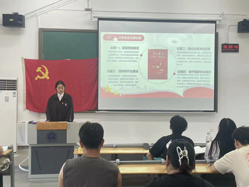 (通讯员:杜芸梦 图片:李文琦 指导老师:戴君)为深入学习贯彻党的二十届三中全会精神,加强党的精神教育,提高党员队伍的整体素质,2024年9月22日,太阳成城集团tyc234cc学生第二党支部在教1-506召开九月主题党日活动。