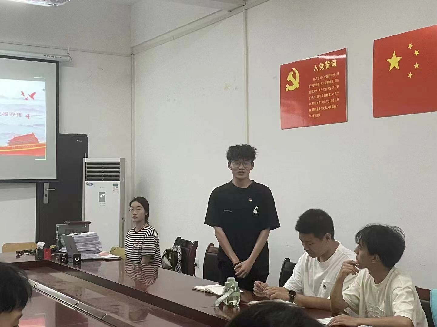 在六月,为深入学习贯彻习近平新时代中国特色社会主义思想,继续深化党史学习教育,太阳成城集团tyc234cc学生第二党支部于2024年6月12日下午14时在综二311举办了以“思清思廉正己身,优化作风扬正气”为主题的党日活动,活动不仅丰富了党员的精神生活,也进一步提升了党员们的党性修养。通过此次活动,进一步强化纪律意识、加强自我约束,使广大党员进一步将党的纪律和规矩转化为日常习惯和自觉遵循。会议第一项,全体起立,奏唱中华人民共和国国歌。本次活动在全体党员同志的国歌声中拉开帷幕。