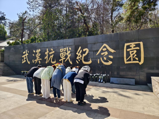 在武汉抗战纪念园,支部开展了爱国主义教育活动,由韩老师主持发言。他先带领大家回顾了抗战先烈们英勇事迹,使同学们深刻感受到了在艰难时期英雄们的勇气和决心。并叮嘱支部成员们要继承和发扬先烈们的精神,为中华民族伟大复兴的中国梦贡献自己的力量。此番发言加深了同学们对湖北在抗日战争中重要作用的理解,更进一步体会到了今天的幸福生活来之不易。随后,众人缓步走向纪念园石碑,肃然站立成队。在一片庄严和肃穆的气氛中,每个人都向英烈们表示了深深的敬意和哀悼。集体默哀结束后,大家依次为革命英烈们献上手中的花束,借朵朵白菊,寄托对英雄们的深切怀念和崇高敬意。
