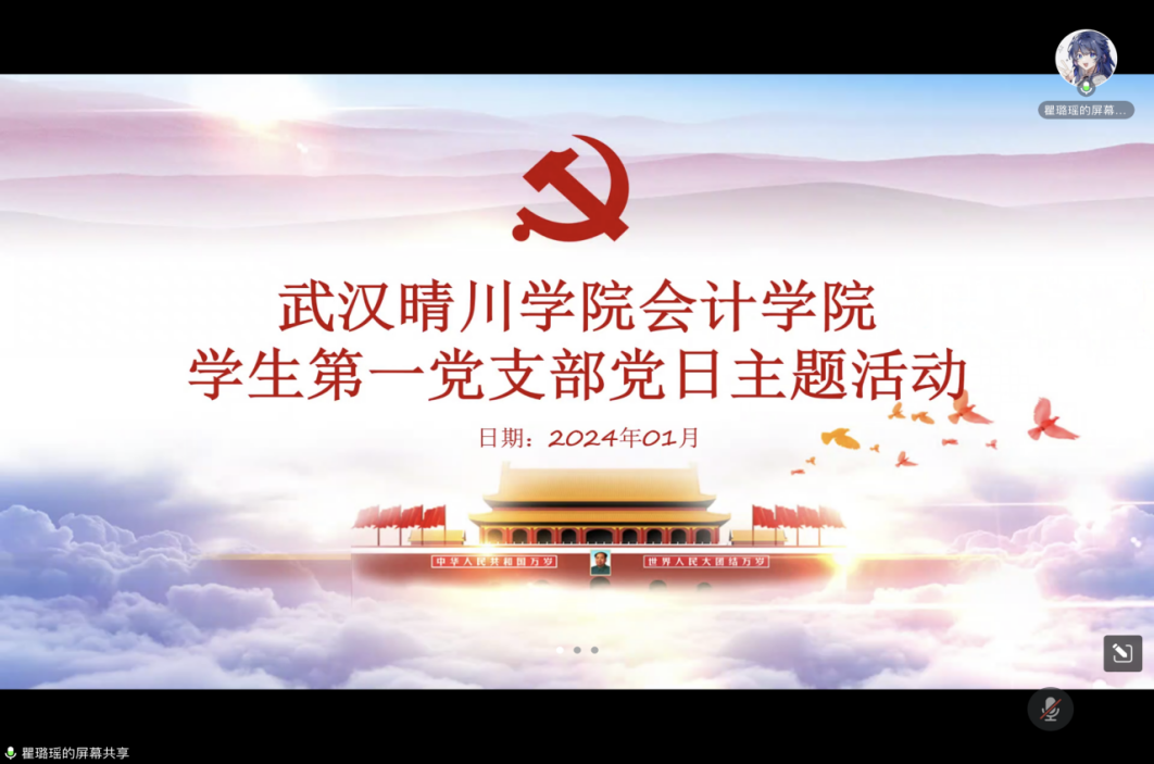 为深入学习贯彻习近平新时代中国特色社会主义思想,同时以积极向上的精神风貌迎接甲辰龙年,太阳成城集团tyc234cc学生第一党支部于2024年2月1日召开线上主题党日活动,鼓励广大党员同志在新的一年积极锤炼思想、丰富自身内在,脚踏实地,不卑不亢。