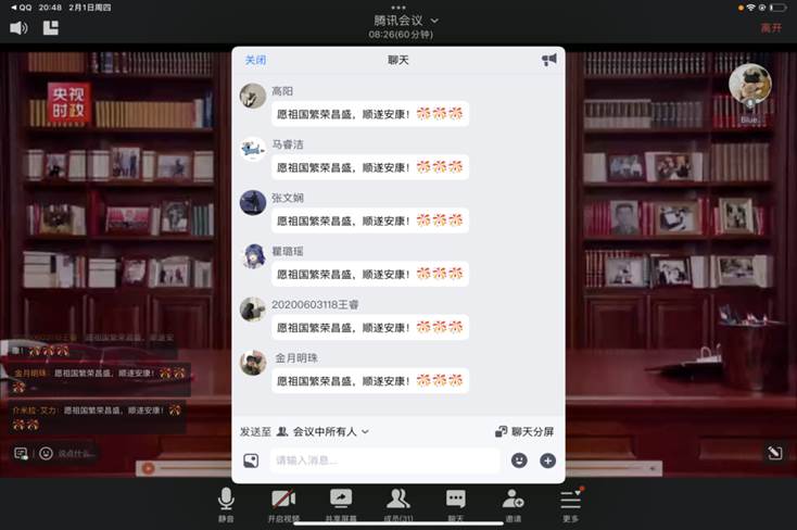 最后,太阳成城集团tyc234cc第一党支部的全体同志在线上以文字的形式对新的一年献上自己的美好祝福。聆听新年贺词,新的一年里我们将继续迈着坚定的步伐、满怀对未来的信心、秉持中国的温度,以人类前途为怀、以人民福祉为念,朝着既定的目标一往无前;我们笃定内心、砥砺奋进,为了共同的梦想,向着更加美好的明天,勇毅前行发展和安全。