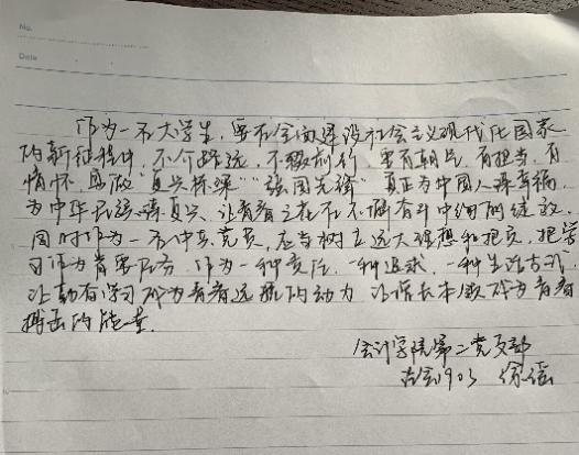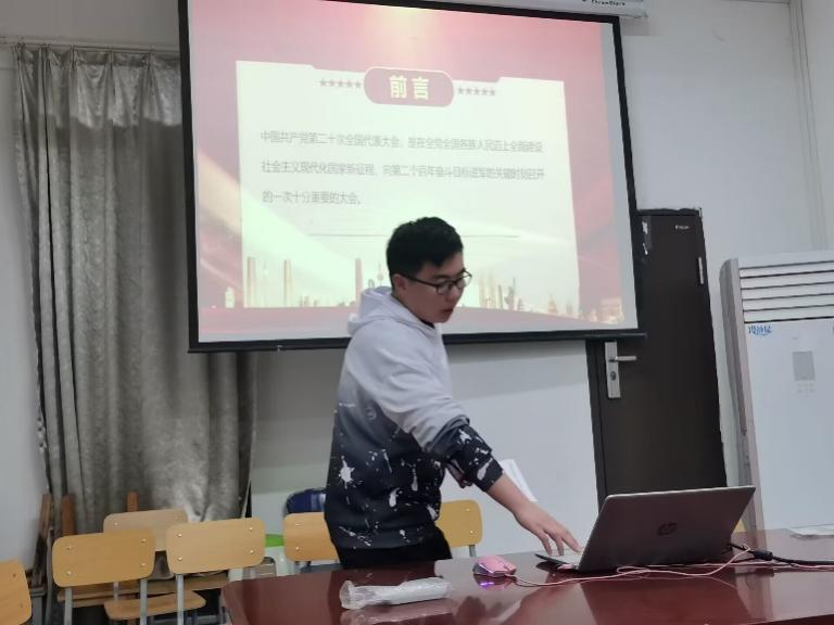 活动最后,学生第二党支部书记郭庆同志进行总结:党的二十大开启了全面建设社会主义现代化国家新征程,作为青年党员要明白党员不是一个帽子和头衔而是自觉帮助同学,团结集体,做力所能及的事更是在组织需要我们的时候能够挺身而出的身份。持续学习二十大精神是让我们将这种精神带到我们的生活中去,在属于青年的赛道上奋勇争先,跑出当代青年的最好成绩,坚决扛起新时代青年的责任使命。