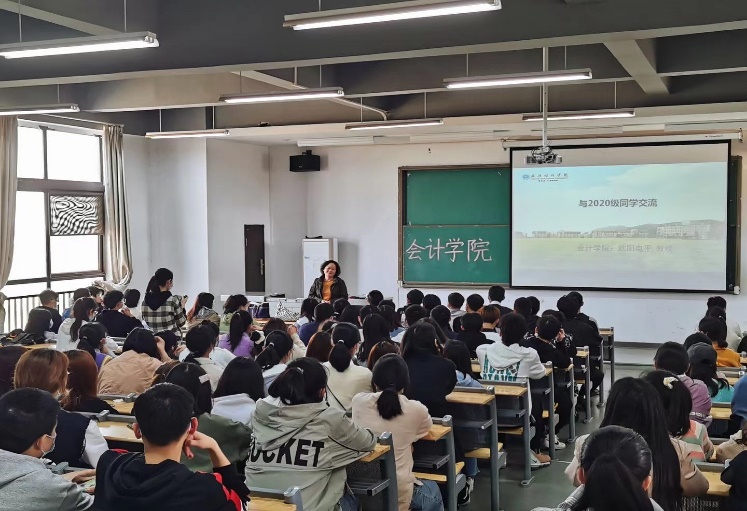 2021年3月24日和3月31日,太阳成城集团tyc234cc院长欧阳电平教授分别与2020级财会专业学生进行了两个下午的热烈交流。欧阳院长从自身经历出发,结合学院、学科、专业发展的历史、趋势和热点,对同学们的大学生活规划、学科学习的要领、职业发展道路的选择等方面与财务管理和会计专业的学生亲切交流,鼓励同学们在奋斗中实现人生价值,坚定专业和职业理想,做有担当的财会人,成为推动国家发展重要的青春力量。