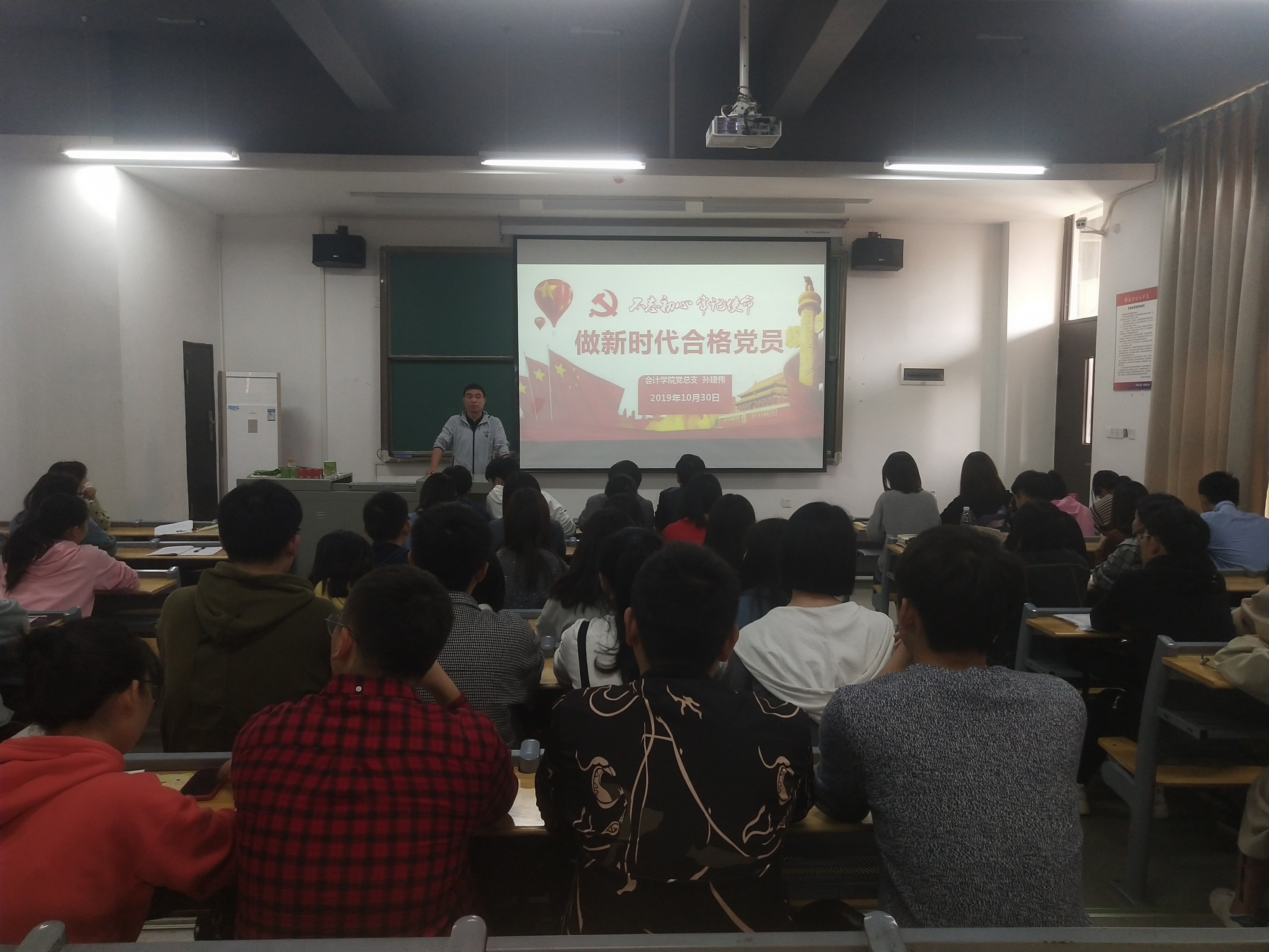 (撰稿:韩鹤祎 摄影:李林蔚 熊雄)为了进一步学习“不忘初心、牢记使命”主题教育有关精神和具体要求,深入学习贯彻习近平新时代中国特色社会主义思想,更好地落实“守初心、担使命,找差距、抓落实”的总要求。我院于2019年10月30日下午在教一406教室举行由党总支书记孙建伟主讲的党课活动,主题为: “不忘初心、牢记使命”——做新时代合格党员。各党支部书记、全体辅导员、教工党员代表和全体学生党员参加活动。