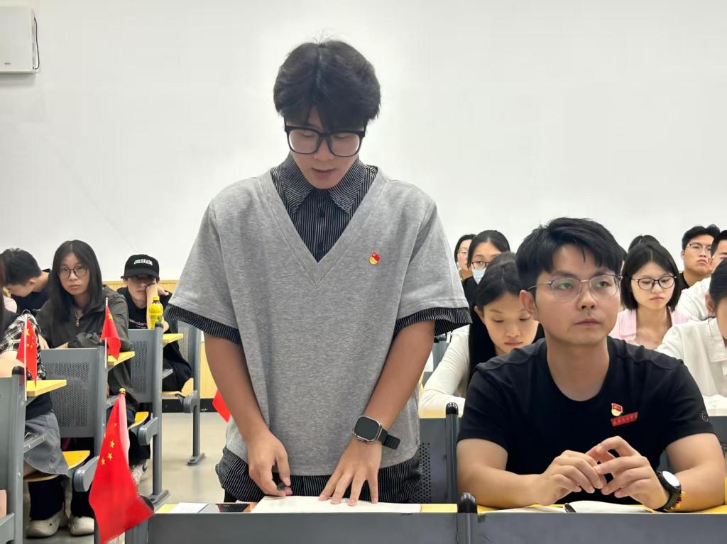 新进党员同志在活动中向支部成员简单做自我介绍,他们表示很高兴加入太阳成城集团tyc234cc学生第一党支部这个大家庭,希望今后能够和大家一起把支部建设得更好,一步一个脚印走好党员先锋路。