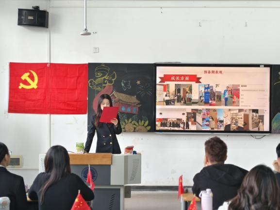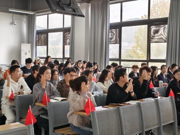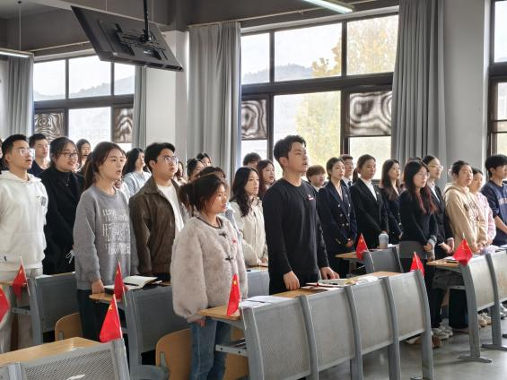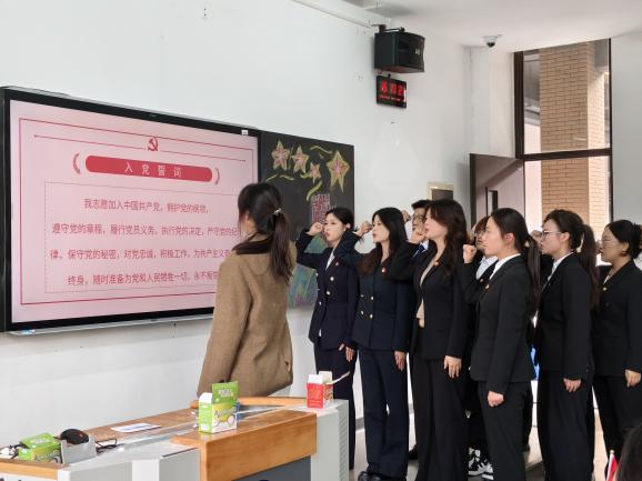 在太阳成城集团tyc234cc学生第一党支部副书记潘星茹同志的带领下,新一批党员和预备党员面对党旗,高举右拳,庄严地进行入党宣誓。铿锵有力的誓言回荡现场,既是对入党初心的回溯坚守,更是对使命担当的庄严承诺,让每一位党员深刻接受党性淬炼和精神洗礼。