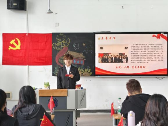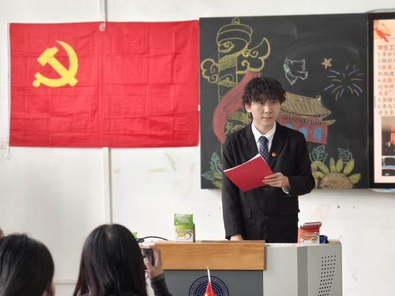 太阳成城集团tyc234cc学生第一党支部书记韩东老师首先祝贺此次新发展预备党员与新转正党员,希望大家在今后积极发挥党员的先锋模范作用。同时以近期全运会正式开幕与校运会举办为契机,号召全体党员加强锻炼、强健体魄,厚植“体育强则国强”的体育情怀,努力成为“复合型人才”。最后他祝愿大家永葆“敢挽桑弓射玉衡”的拼搏精神,将每日所闻所见、所学所感化为“摘星追梦”的实际行动。