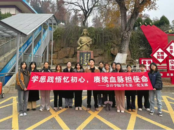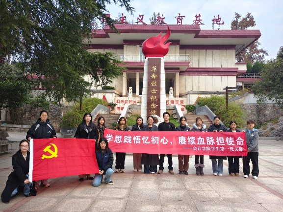 参观结束,支部同志于纪念碑前作心得分享。王雨乔同志率先发言:“今天看到有的烈士在航天领域啃下技术硬骨头、有的在基层医疗守好民生小门,才明白‘为国家事业奋斗’是渗透在每一个岗位的。我们的美好生活,是先辈们在各个‘战场’接力拼来的。”刘诗绮同志说:“先辈们把一生都绑在了国家的‘事业线’上,我们这代人,要把青春系在民族复兴的‘征程线’上,才对得起这份‘前人栽树’的恩情。”郑雅婕同志认为最触动她的是那些退休后仍投身国家建设的先辈,他们把“离岗不离心”刻进了生命里。这让她懂得‘奋斗’不是一时的热血,而是一辈子的坚守。刘栩梦同志看到在会计行业奉献一生的先辈们一辈子没算错过一笔账后结合自身专业表示:“作为会计专业的学生党员,我们同样要把每一笔账算实、把每一项数据做准,像先辈们那样,在平凡岗位里守住初心、干出价值。”