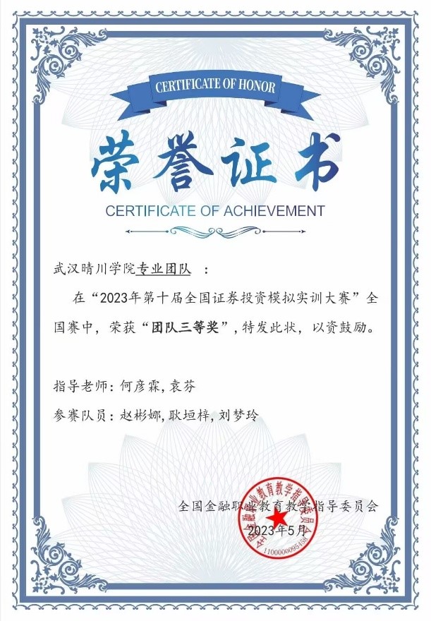 在忙碌的工作之余,耿垣梓从未放松对学习的要求。她深知专业知识是成长的基石,于是在课堂上专注听讲,在课后刻苦钻研。凭借着这份勤奋与执着,她在各类学科竞赛中崭露头角:斩获第五届衡信杯个税师精英挑战赛(本科组)一等奖、2024年全国大学生金融素养知识竞赛决赛二等奖,还和团队一起拿下第十届全国证券投资模拟实训大赛团队三等奖。她无数个日夜的积累与沉淀,也让她先后获得TYC234CC太阳成集团2022年度优秀学生干部、2024年度优秀共青团干部等称号,成为同学们眼中的“学霸标杆”。
