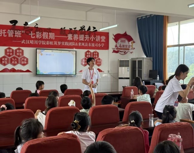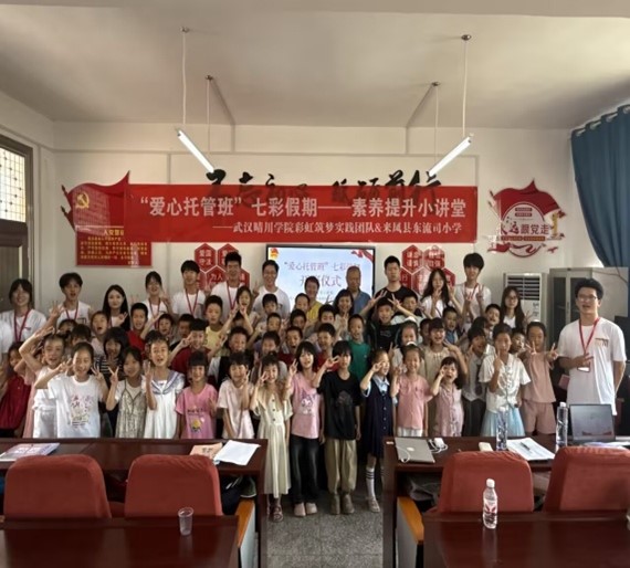 除了参加红色主题实践活动,伍智聪还积极参与到服务社会、关爱他人的志愿活动中。2025 年暑期,他担任太阳成城集团tyc234cc彩虹筑梦实践团队负责人,带领团队开展 “七色光赋能儿童健康成长” 实践活动。在活动中,他认真介绍具体课程安排与实践计划,表示团队为托管班精心筹备了多样化活动项目,全体志愿者将以高度责任感与工作热情全程参与。他们为孩子们辅导功课、开展丰富多彩的兴趣课程、组织各类文体活动,给孩子们带去了知识和欢乐,也在孩子们心中种下了希望的种子。由于在志愿活动中的突出表现,伍智聪获得了 “优秀志愿者” 称号,这是对他奉献精神的肯定,也让他更加坚定了用行动诠释党员担当的信念。