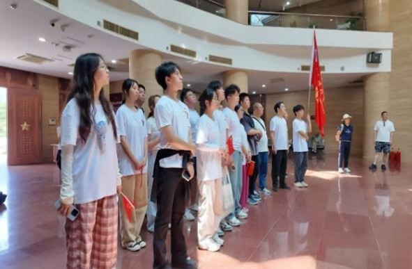 在新县的红色革命遗址前,“薪火传递” 党员实践团全体成员列队肃立,在伍智聪同学的领誓下,高举右拳重温入党誓词。松涛阵阵中,他字字铿锵:“红二十五军的少年们平均十六岁,却率先抵达陕北开辟血路,这是‘胸怀全局’的青春担当!” 此次新县之行,让伍智聪对大别山精神有了更深层次的理解,也让他更加坚定了传承红色基因、担当时代使命的决心。