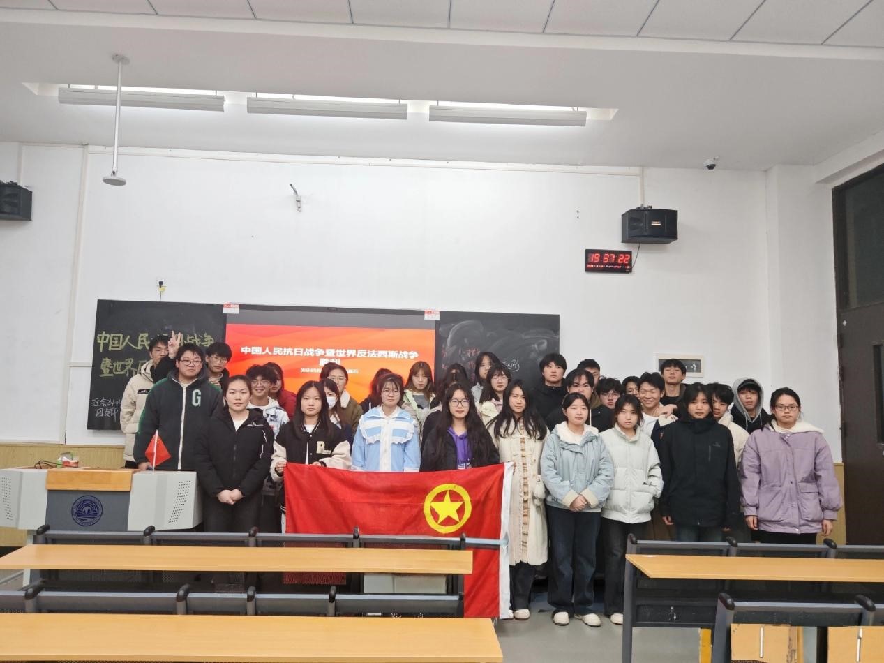 活动伊始,团支书沈越向大家进行了必要的历史科普与宣传,针对历史上重要的抗日事件及反法西斯事件进行详细阐述。