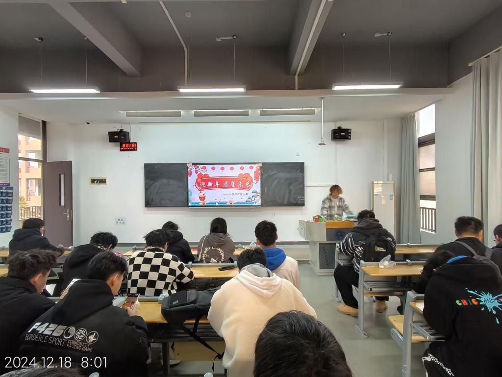 (推文:何晋余,推文:何晋余,指导老师:韩伟) 祥龙辞旧岁,巳蛇纳新福。为回顾今年并展望未来,工管2301团支部特别策划以“迎新年展望未来”为主题的团日活动,于2024年12月18日在教1-305召开。参加本次活动的成员为工管2301团支部全体,本次活动由何晋余同学主持。