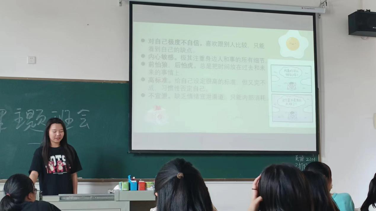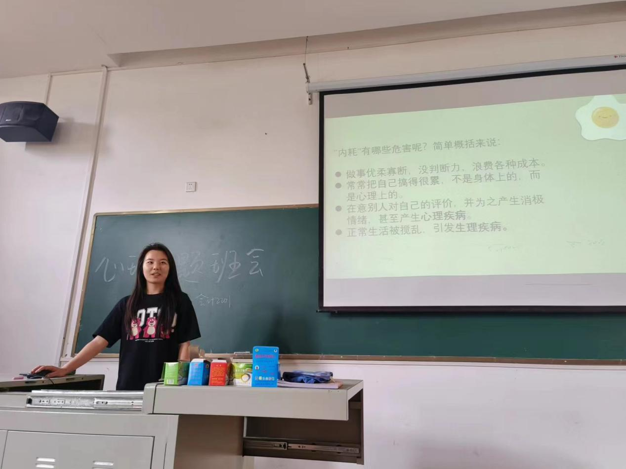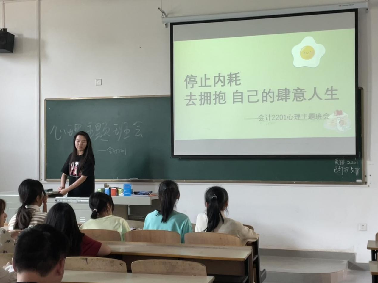 (图文:曾旺,指导老师:刘琪)余华说:“精神内耗 ,说白了就是自己心里的戏太多了。言未出,结局己演干百遍;身未动,心中已过万重山;行未果,假象苦难愁不展;事已毕,过往仍在脑中演。”每个人都会陷入这种内耗。这很正常,但也要及时走出来。为了帮助同学们远离焦虑,会计2201班心理委员郭贤婧同学组织了以“停止内耗,去拥抱自己的肆意人生”为主题的心理班会。