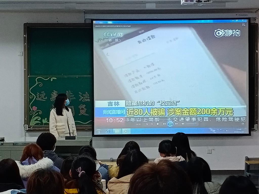 (通讯员:石光慧)2020年11月30日下午3:30,金融管理三班和四班全体成员在教三403教室观看了关于抵制校园网贷的视频,旨在加强同学们的自我防范意识。班会由汤美芳同学主持。班会开始时,同学们有序就坐,由汤美芳同学播放视频。
