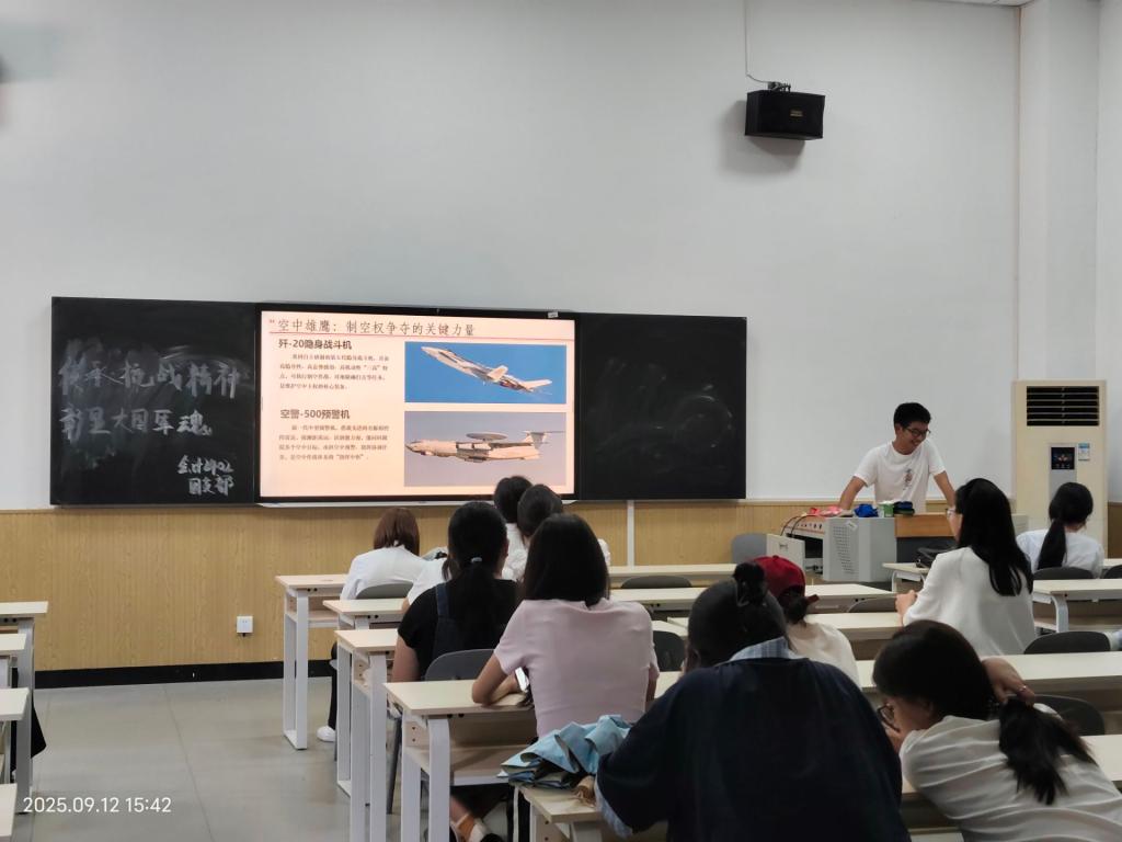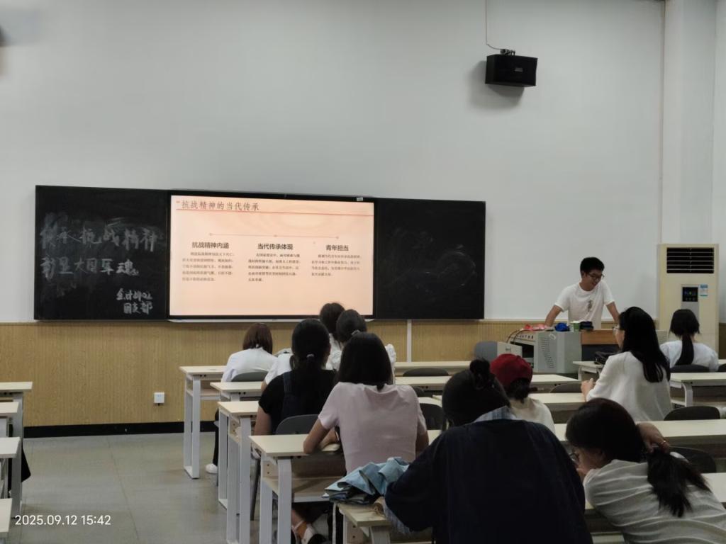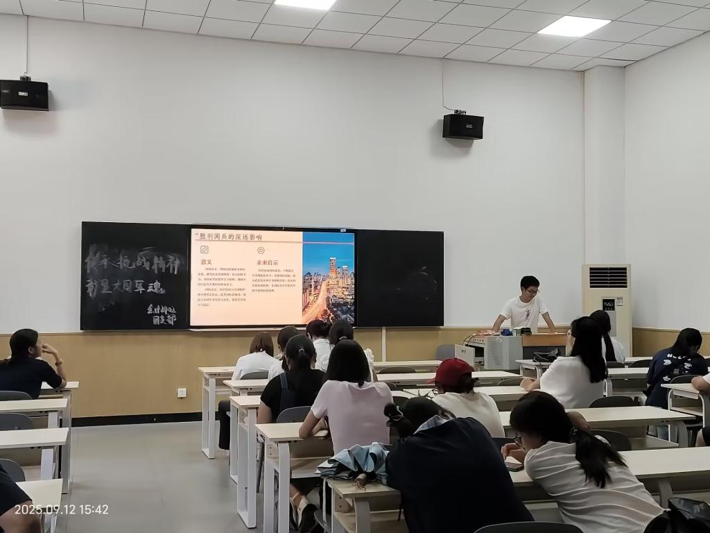 (图文:白思羽 指导老师:高梦瑶老师)为了激发同学们的爱国热情和民族自豪感,会计2402团支部特别策划以“传承抗战精神,彰显大国军魂”为主题的团日活动,于2025年9月12日在教1-101召开。参加本次活动的为会计2402团支部全体成员,本次活动由罗致远同学主持。