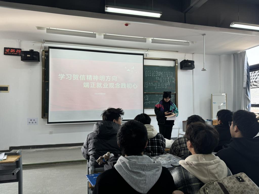 活动第一项,团支书带领支部成员系统学习习近平总书记重要贺信精神,重点解读贺信中对青年成长成才的殷切嘱托,阐释贺信精神与职业选择、就业观念的内在联系,让支部成员清晰认识到贺信精神对未来就业的实践指引意义,以及在专业学习、职业规划中践行贺信要求、树立正确就业观的重要性,现场学习氛围浓厚。