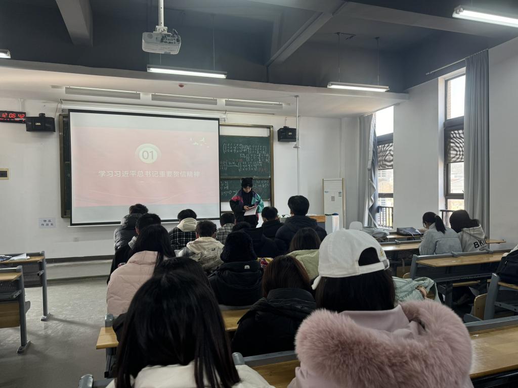 为深入学习贯彻习近平总书记重要贺信精神,引导支部成员准确把握贺信核心要义与实践要求,树立正确就业观,将青春理想融入职业发展与国家建设大局,2025年12月16日,注会2408团支书邱曼琪带领支部成员于教1-409开展“学习贺信精神明方向,端正就业观念践初心”主题团日活动。