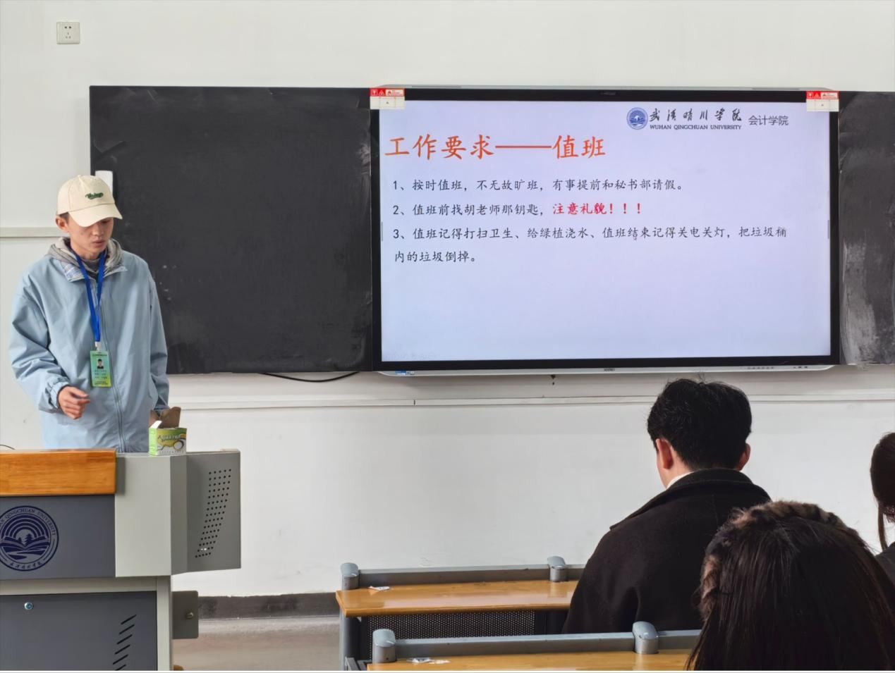 随后,会乐小屋副会长任富娆与副会长程振望上台发言,着重强调了后续活动开展的总体要求,并针对五六月的换届问题展开了详细说明,鼓励大家踊跃参与竞选。