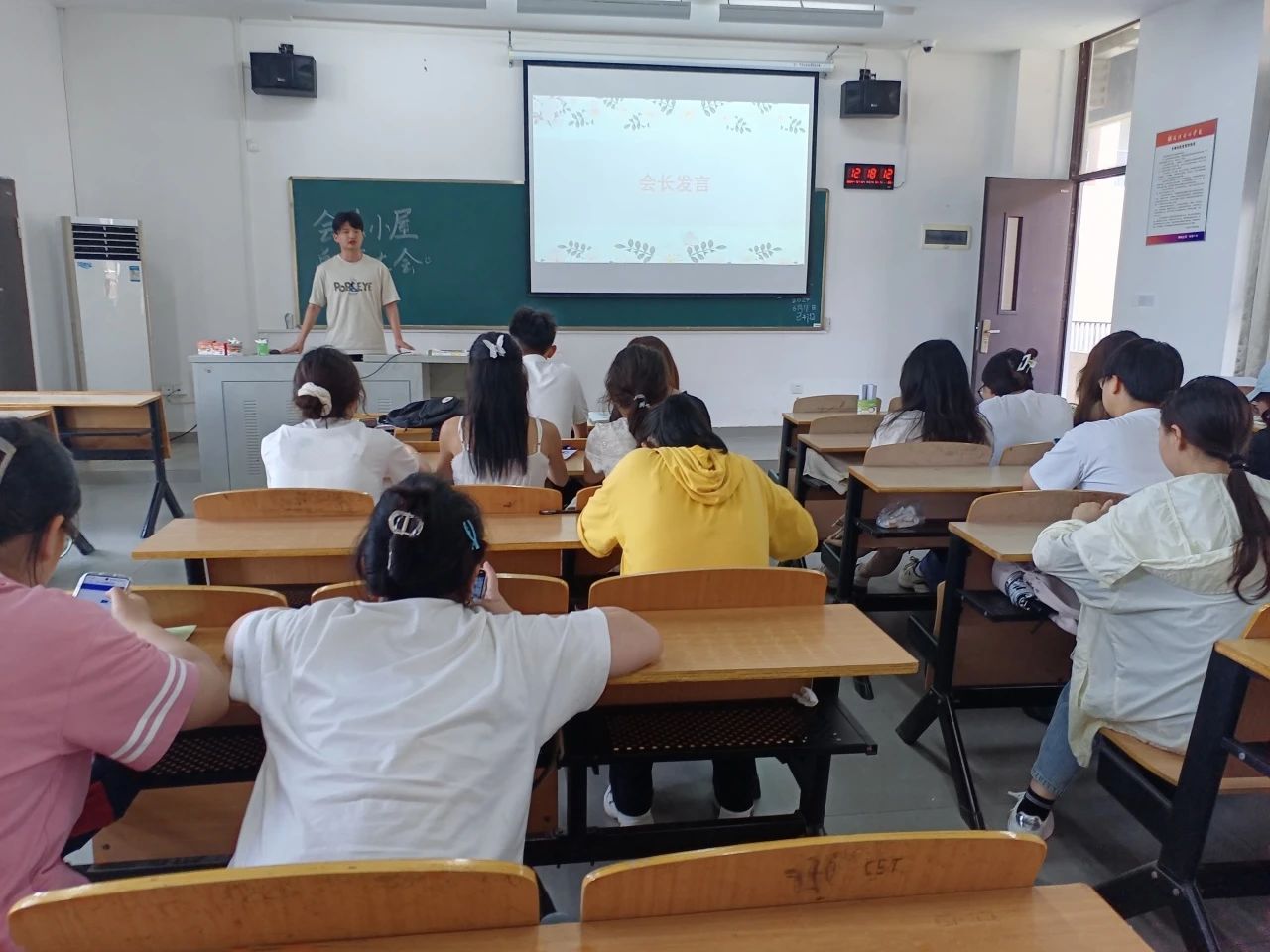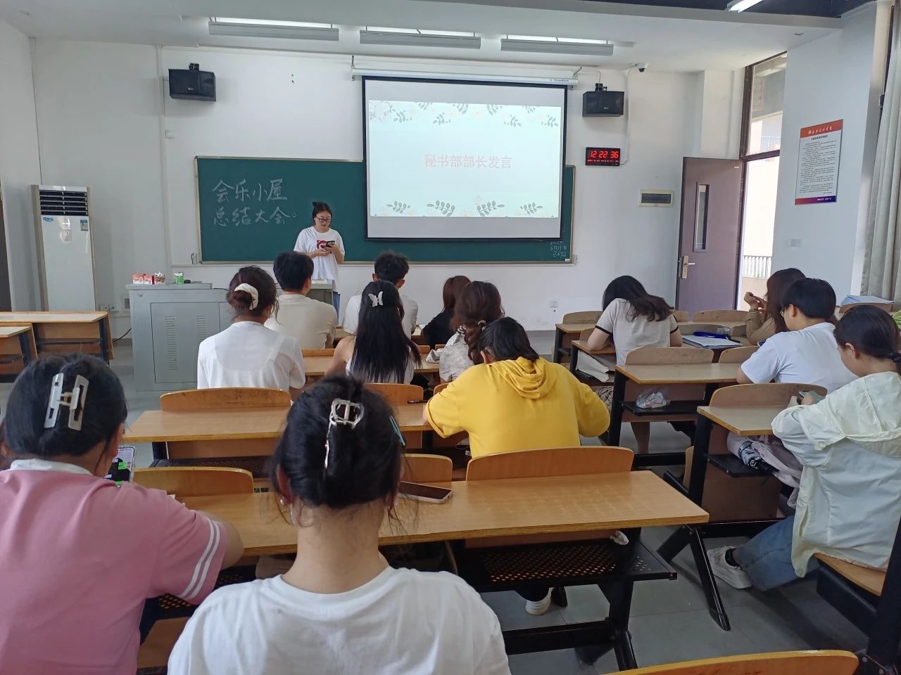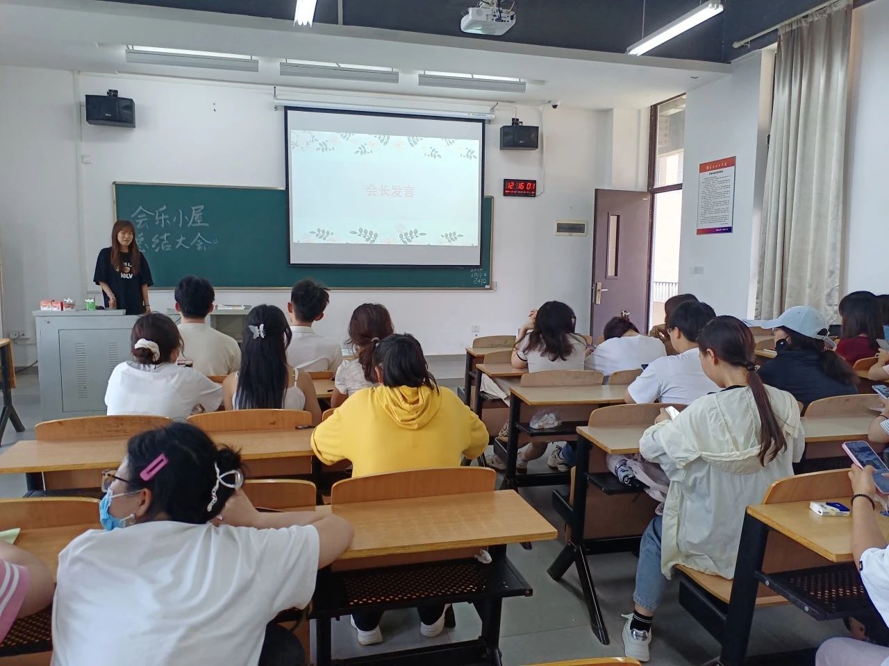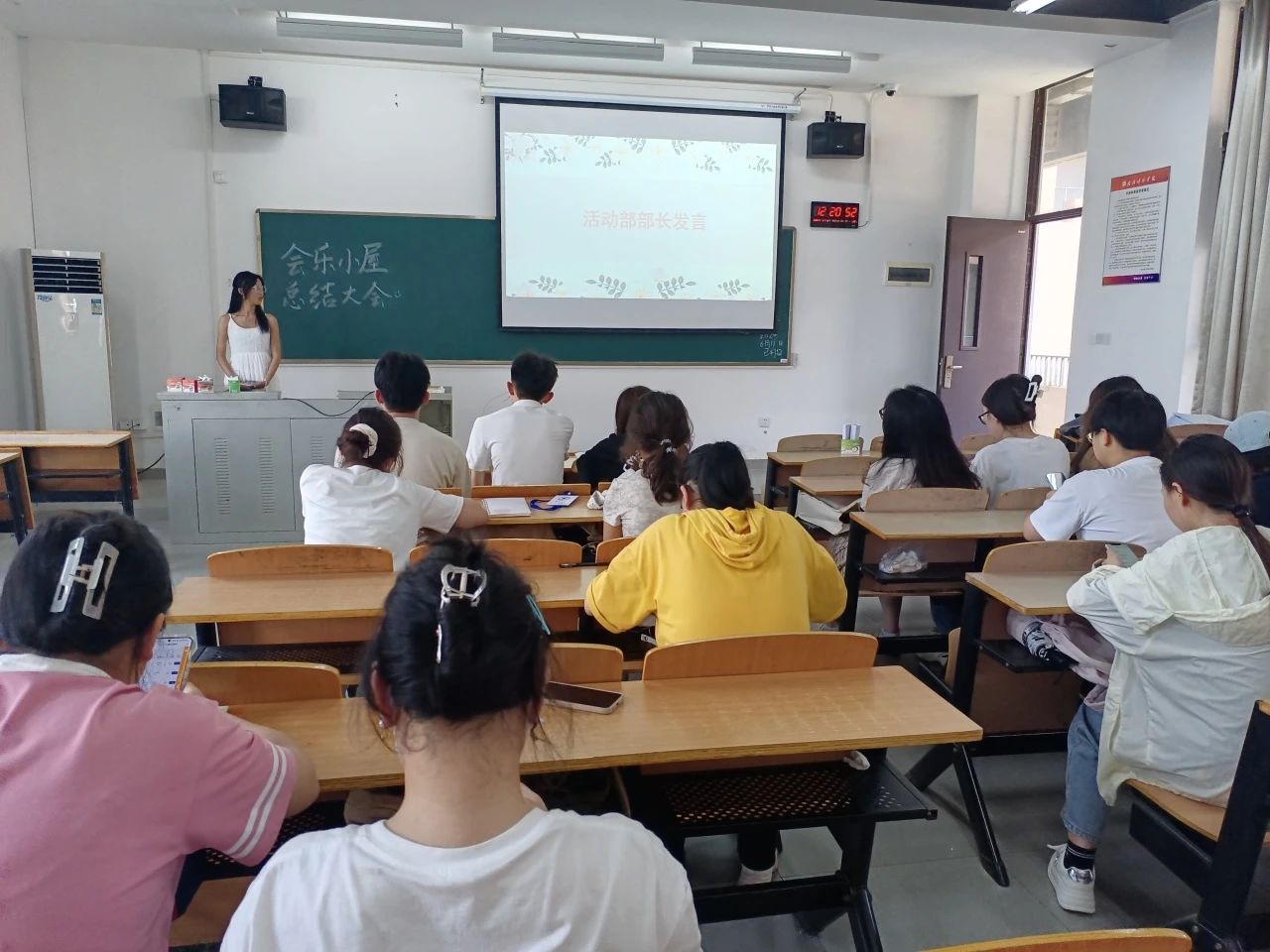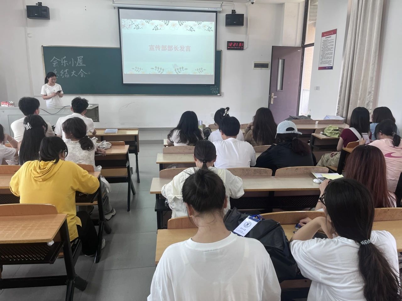 胡桂米同学回望了一学期的工作,感谢会乐小屋各个部门的积极配合协作努力下,各项工作得以顺利进行,并对学期内会乐小屋的几个大型活动做出总结,希望各位再接再厉。