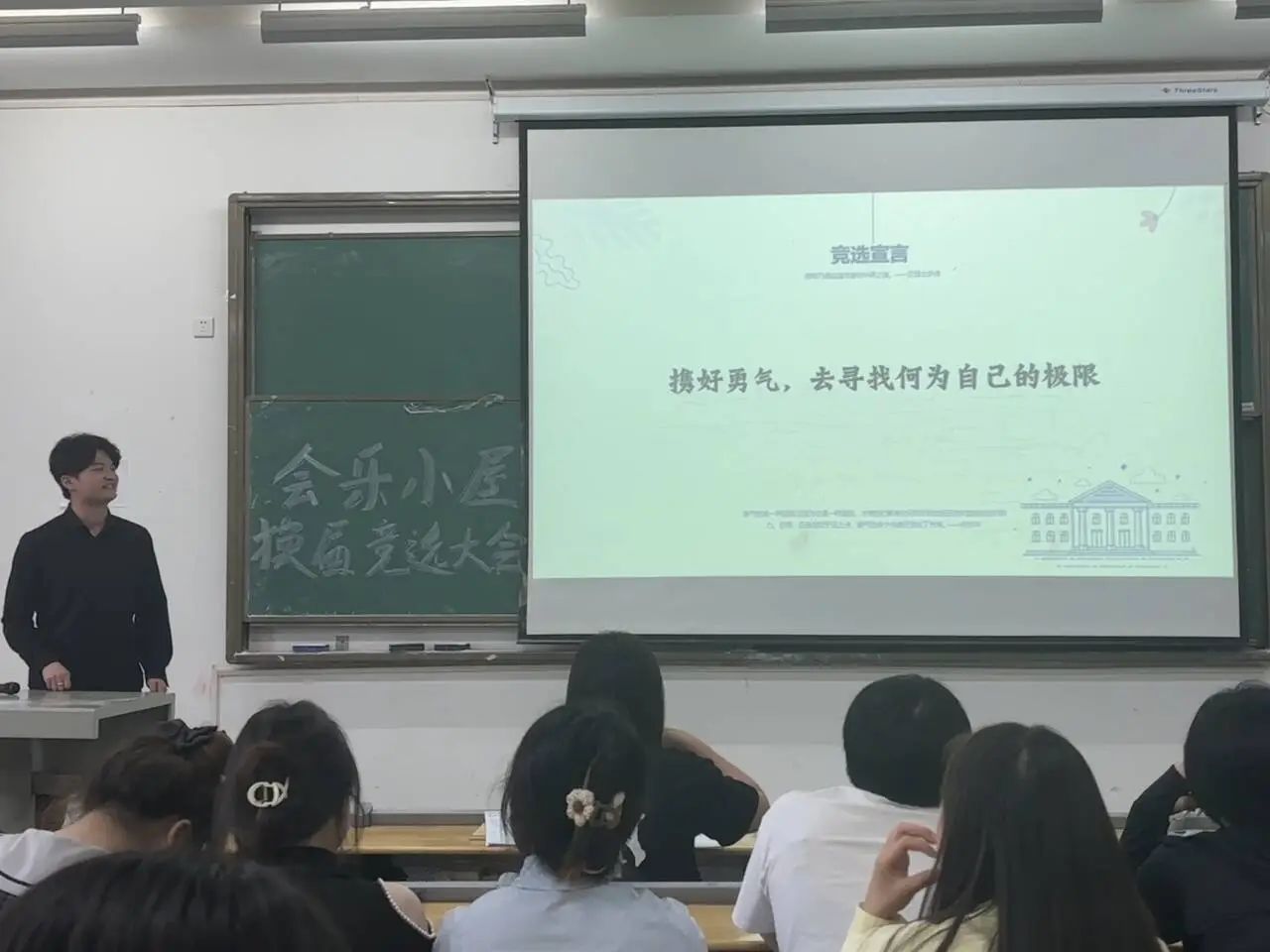 接着,辛福霖进行了竞选发言,他竞选的是会长一职。“流水不争先,争的是滔滔不绝”,他将这句话作为自己的进行宣言。在工作中他脚踏实地,一直发挥着部长的带头作用,收获了经验满满。他指出自己的不足之处,没有做到一个优秀的领导者角色,比如:信息传递偏差,任务布置不够精细化和善后工作的布置等等。同时他也认真反思自己的不足,并详细列出改进方法。他希望,在未来的工作中,他可以做到一个优秀的领导角色,继续和会乐小屋并肩同行。