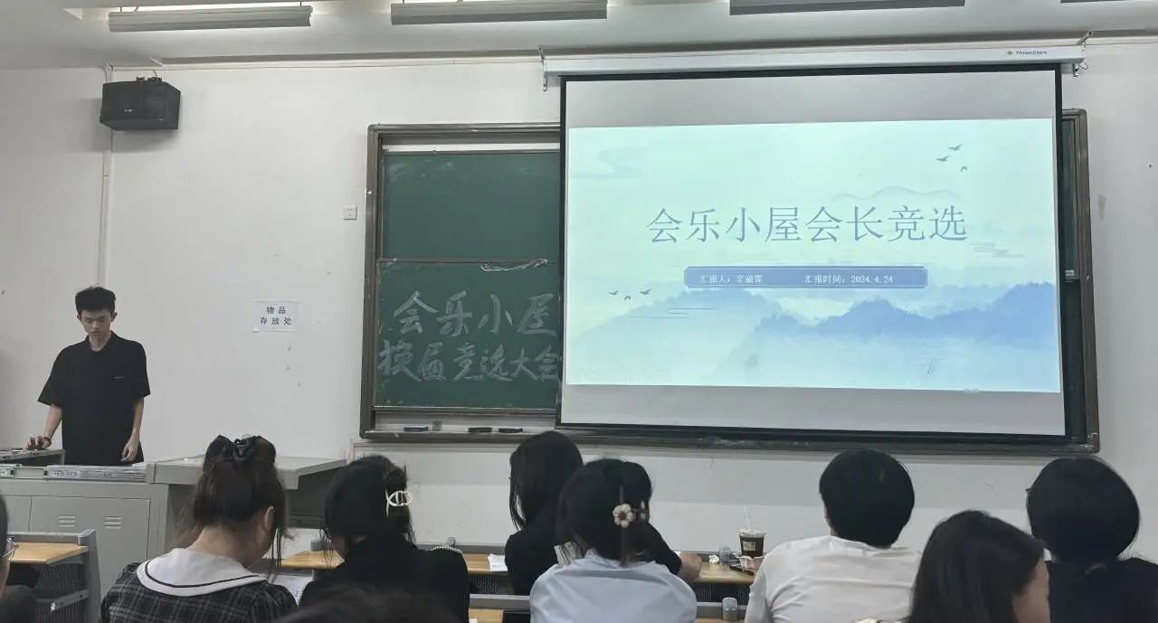 走过四月细雨,不觉五月将至,伴着鸟语蝉鸣,借着灿烂明媚,会快乐小屋迎来了又一年换届竞选大会。会乐小屋现任会长即将面临忙碌的大四,为更好的建设会乐小屋,将“多巴胺”的精神传递,会乐小屋于2024年4月26日17:05-18:30在教一303开展了换届竞选大会。此次大会由会乐小屋会长贺锦鸿主持,共有五名干部参与竞选,小屋全体成员参会。